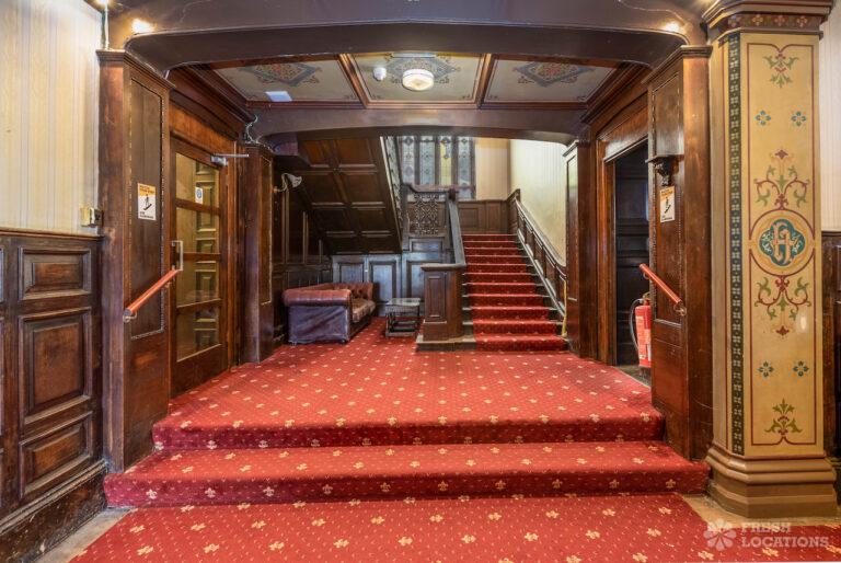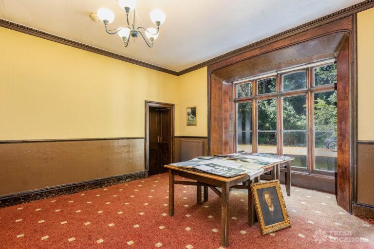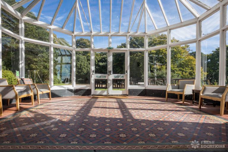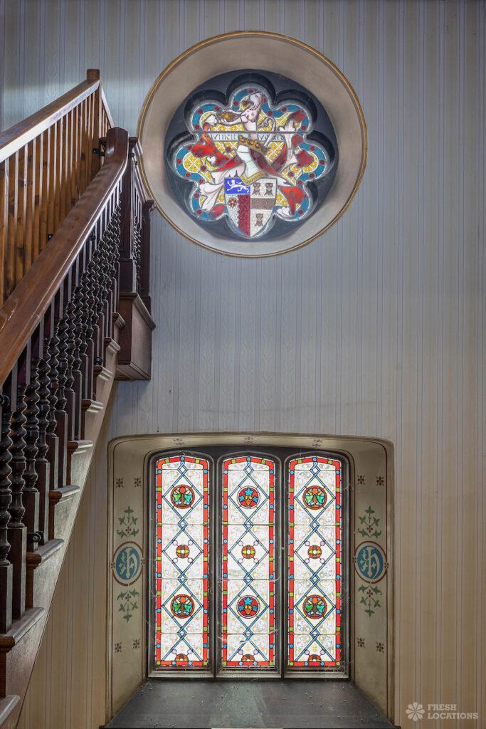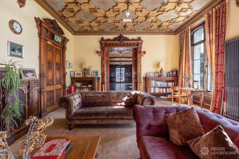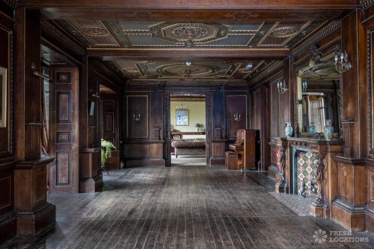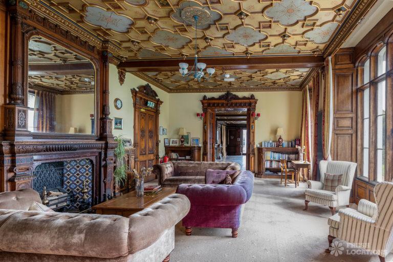 Wood Floors, Bay Window, Courtyard, Dark Wood Floor, Driveway, Fireplace, Garden, Panelling, StaircaseGrade 2 listed mansion shoot location on the Isle of Wight. This Tudor-Gothic Mansion features a wood panelled Great Hall, a drawing room, fireplaces, a conservatory and a gorgeous main staircase. The property is set in 10 acres of grounds with sea views.
