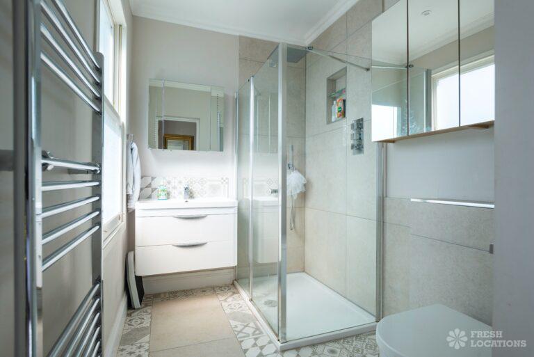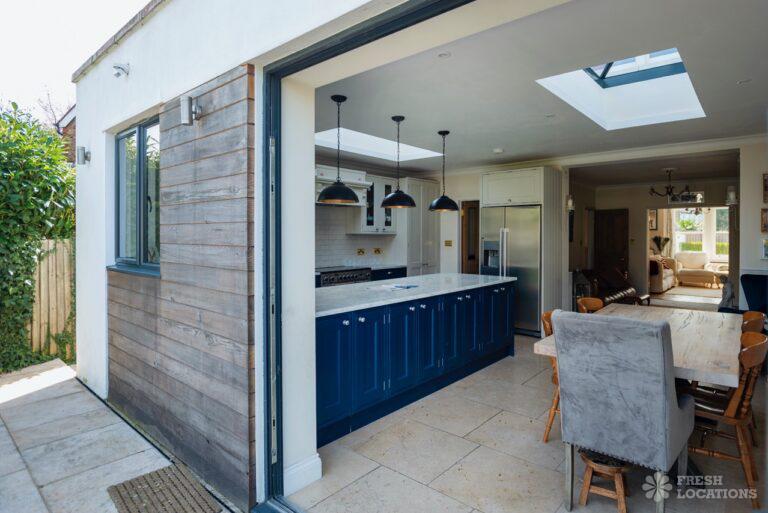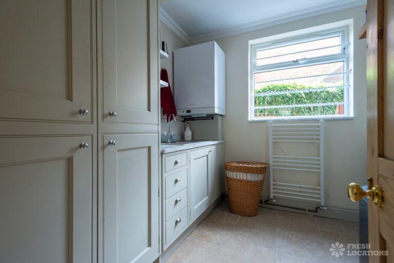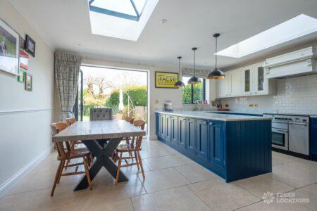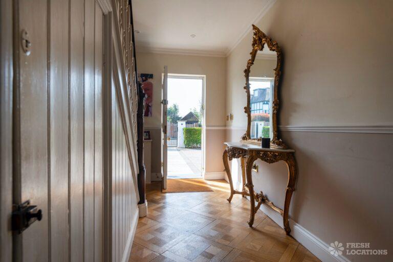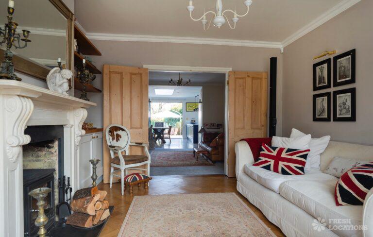 Wood Floors, Driveway, Fireplace, Garden, Large Bedroom, Open Plan, Parquet Floor, Skylights, Staircase, Tiled Floor, Walk In ShowerRenovated Edwardian shoot location in Hampton. The gated property features a garden annex, open plan kitchen/dining room, utility room, parquet flooring and 5 bedrooms including childrens bedrooms. London borough of Richmond upon Thames.