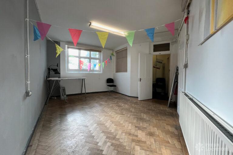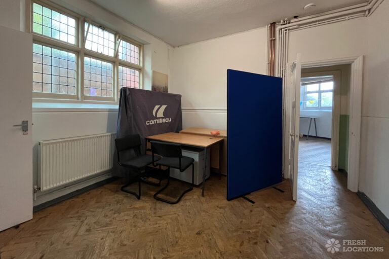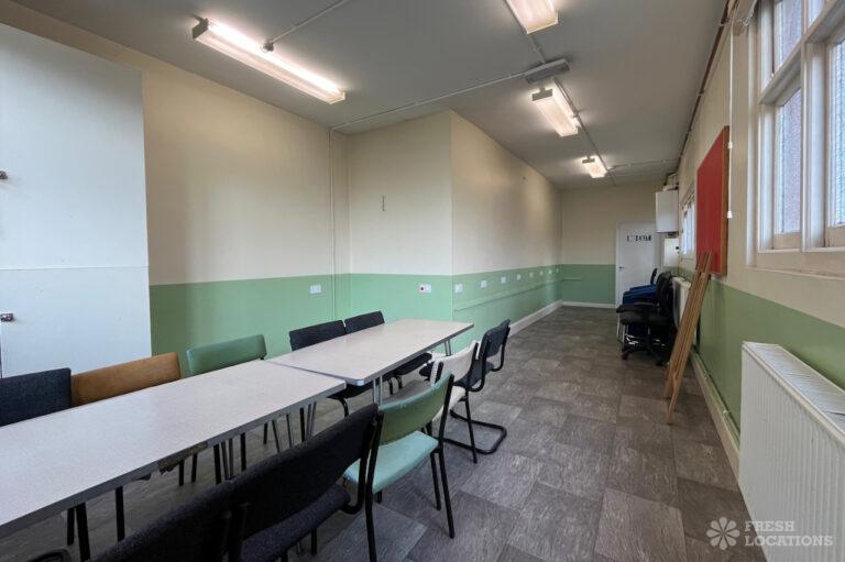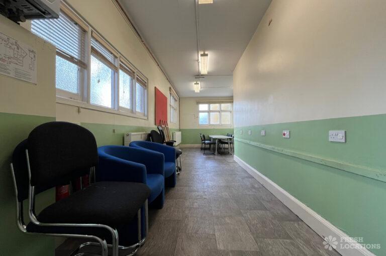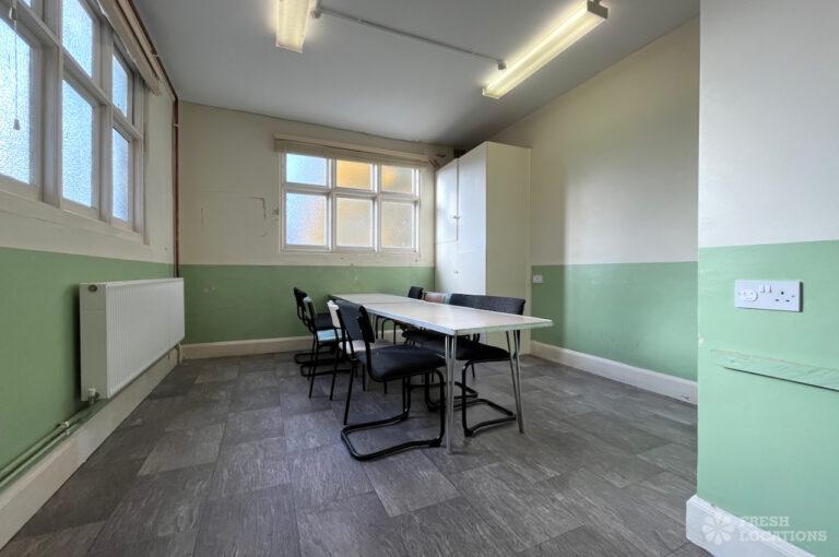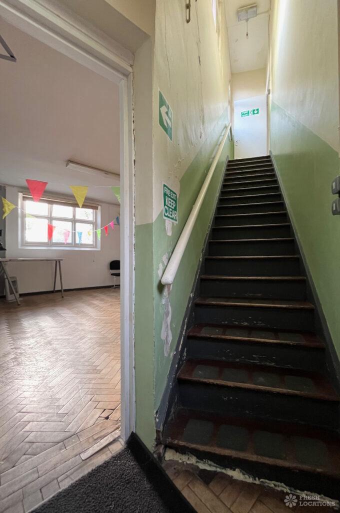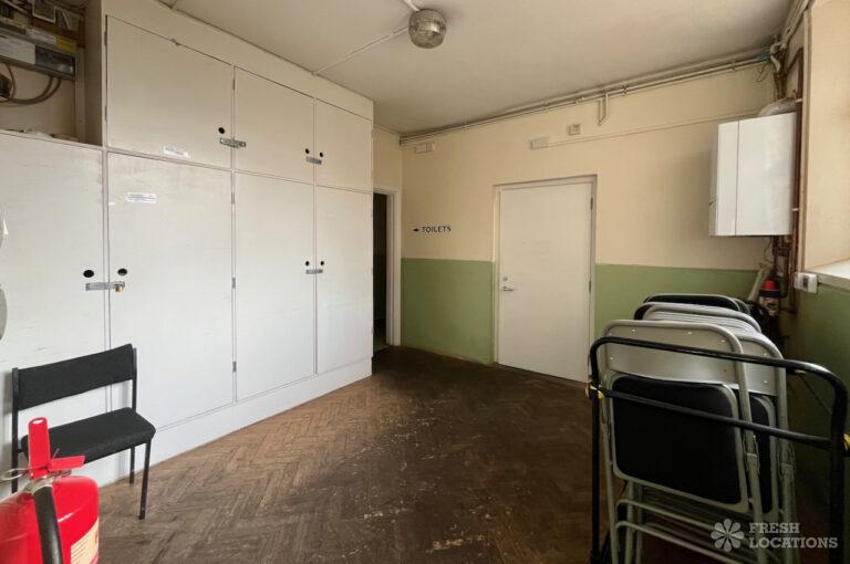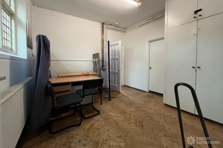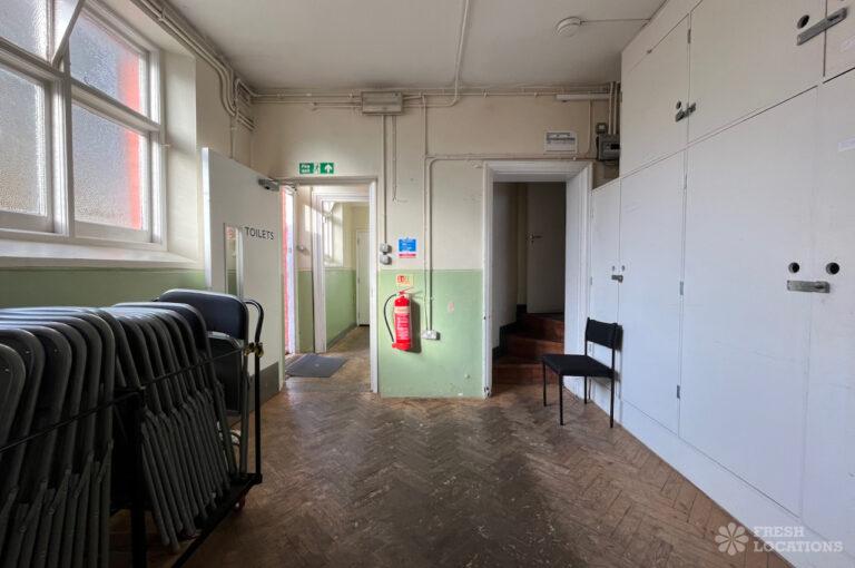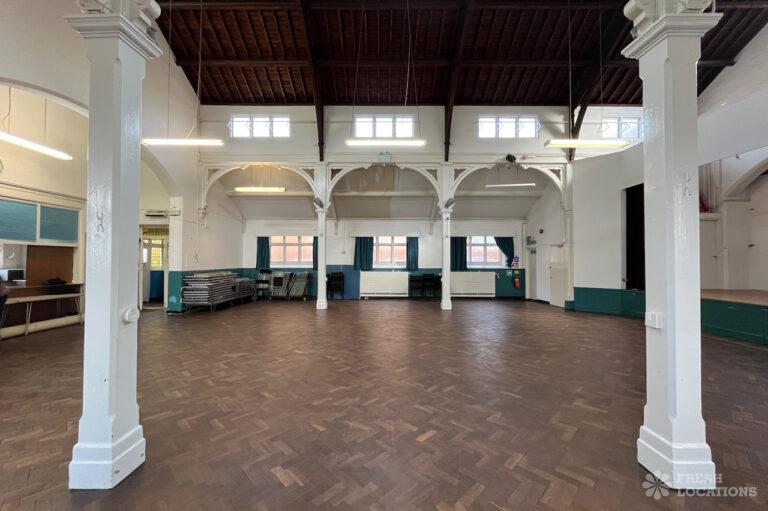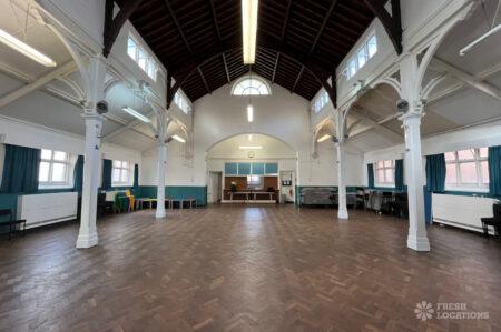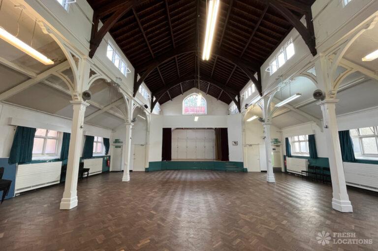 Dark Wood Floor, Exposed Beams, Garden, Light Wood Floor, Parquet Floor, Staircase, Wood FloorsCommunity Hall shoot location in North West London. This property features a spacious main hall with an impressive double-height, wooden vaulted ceiling and a stage. Additional spaces include a meeting room, kitchen, bathrooms, and several empty rooms, offering versatile shoot options and excellent production areas. London Borough of Brent.