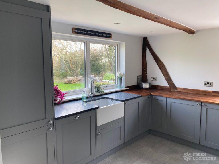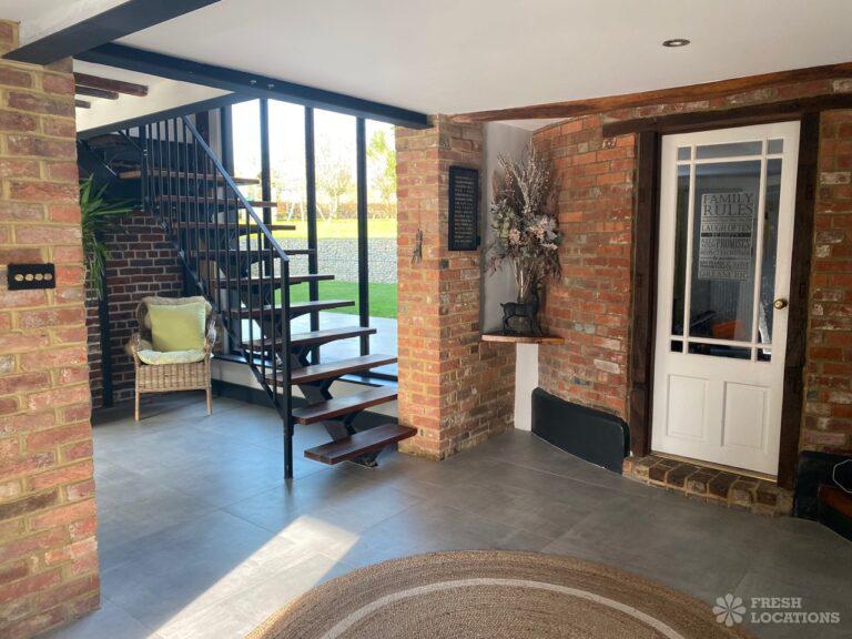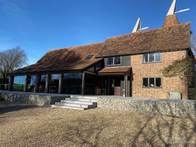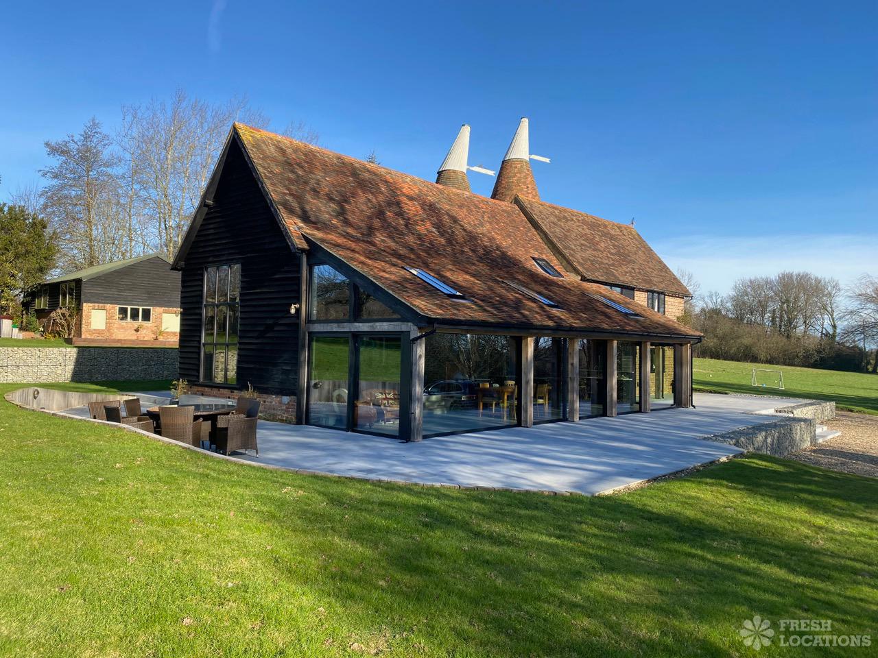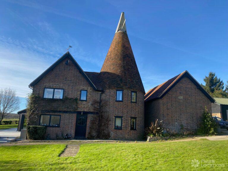 Barn/Oast conversion in Kent. Spacious and quiet shoot location with 4.5 acres of land, as well as a paddock. Features an open plan kitchen and dining area with high ceilings. Parking for 10-12 cars.