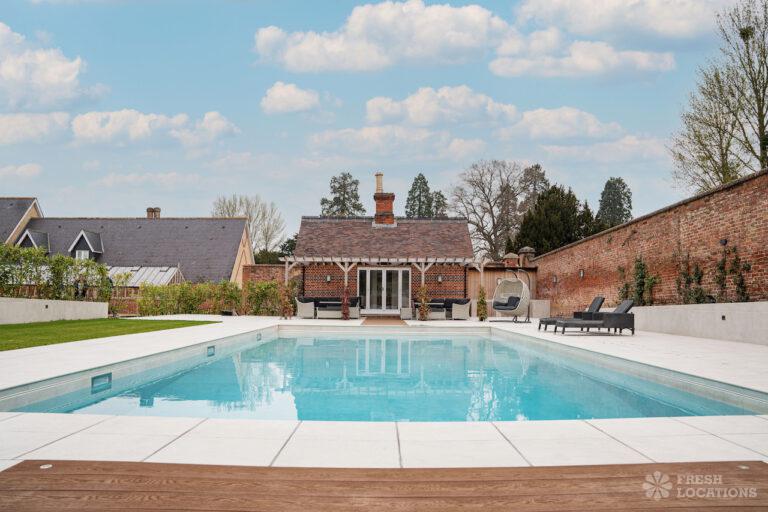Garden, Courtyard, Driveway, Greenhouse, Large Driveway, Summer House, Swimming Pool, Tennis Court, Tiled Floor, Unrestricted Parking, Walled GardenLarge Neo-Gothic stately home shoot location in Berkshire. Featuring multiple large reception rooms with original features. The large grounds include formal gardens, several outbuildings, an outdoor heated swimming pool and a tennis court. Interiors available on request.