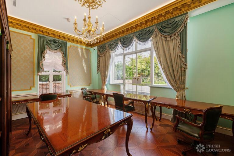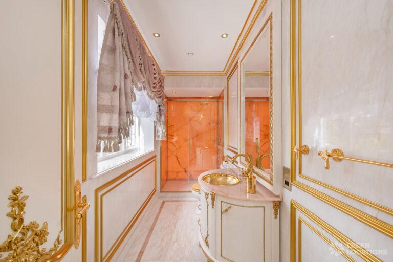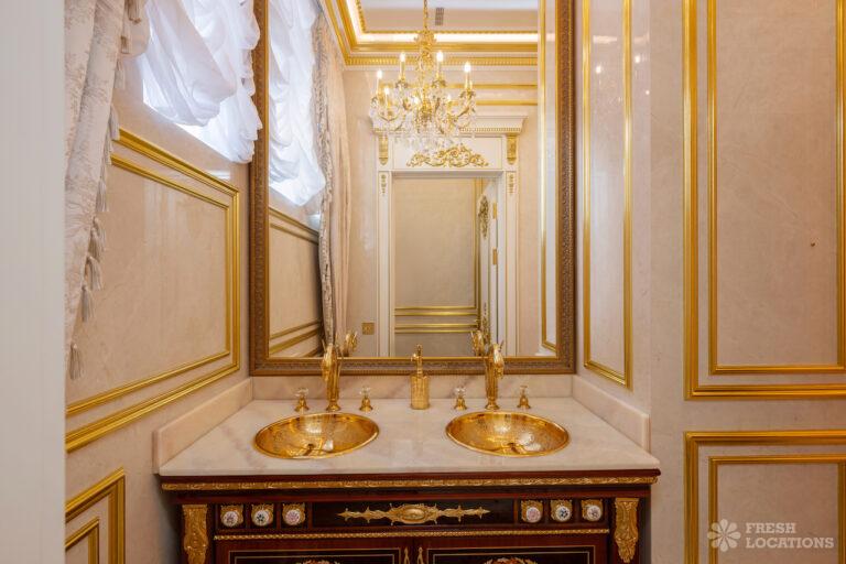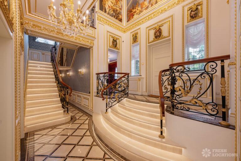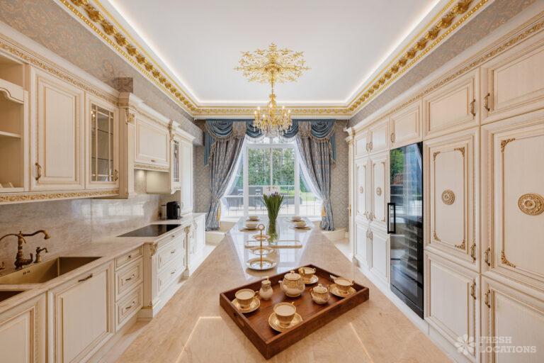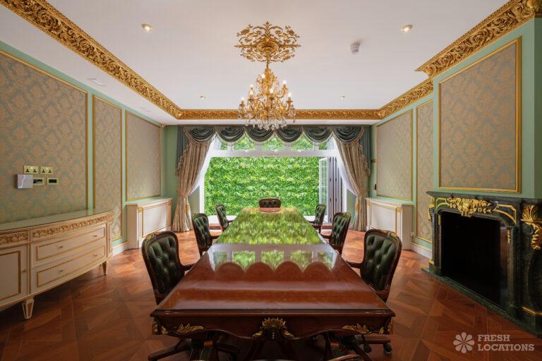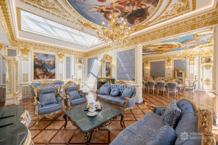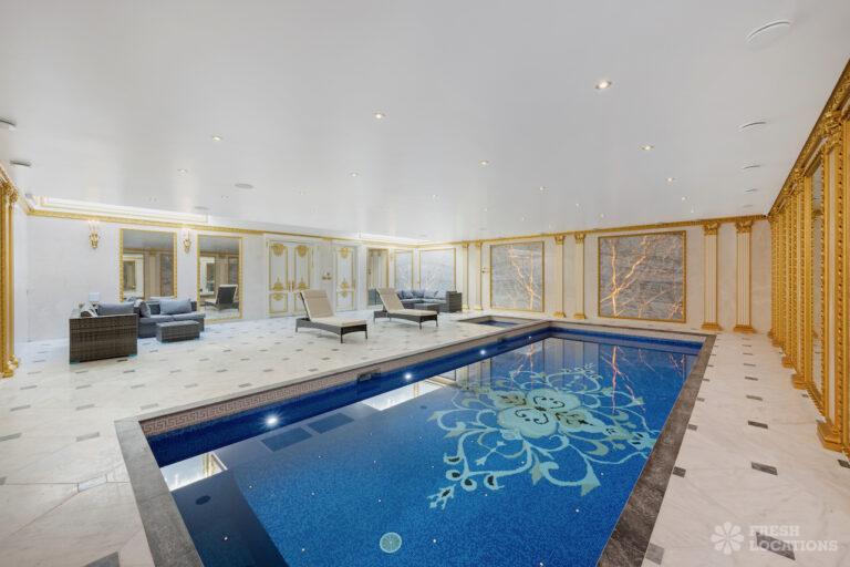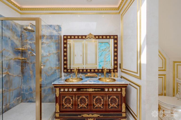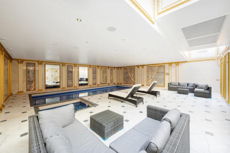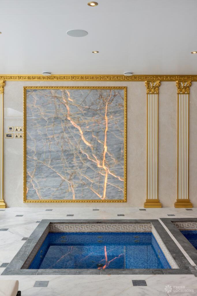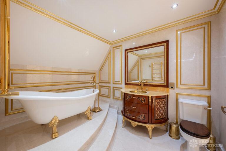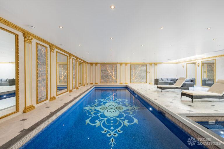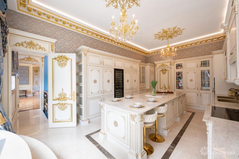 Driveway, Ensuite, Fireplace, Garden, Island Kitchen, Large Bathroom, Large Bedroom, Large Garden, Large Kitchen, Marble Floor, Multiple Bathrooms, Multiple Bedrooms, Multiple Living Rooms, Skylights, Staircase, Walk In Shower, Wood FloorsA show-stopping French Baroque–style mansion in North London, featuring luxurious classical interiors inspired by French and Italian palatial design. The property showcases ornate gold mouldings, marble surfaces, crystal chandeliers, hand-painted frescoed ceilings, high ceilings, and bespoke furniture throughout, located in the London Borough of Barnet.