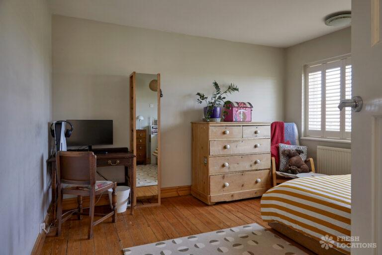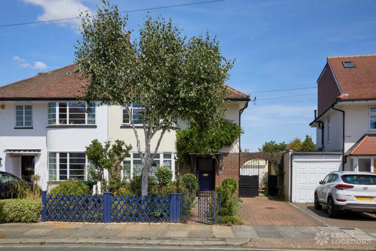 Colourful Kitchen, Driveway, Fireplace, Front Garden, Garden, Multiple Bathrooms, Multiple Bedrooms, Parquet Floor, Staircase, Tiled Floor, Walk In Shower, Wood FloorsA charming 1930s semi-detached family home shoot location in North London, blending period character with vibrant styling. Featuring three bedrooms, one bathroom, and additional WCs, the interiors include an Arts & Crafts inspired lounge, a colourful dining room with a wall of books, and a kitchen with original 1930s cabinetry. The large cottage-style garden offers multiple backdrops with a patio, mature trees, and a nature pond, making this a versatile and characterful setting for shoots. Located in the London Borough of Enfield.