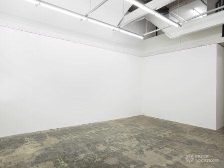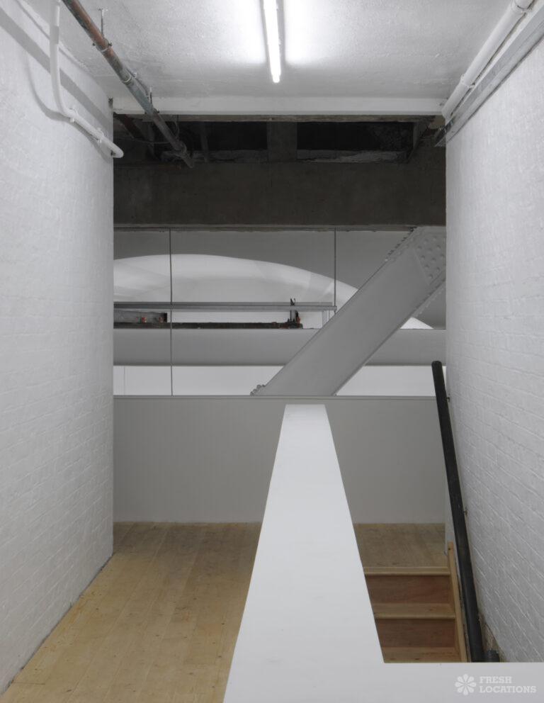 An East London gallery space with one main exhibition room and a host of auxiliary spaces such as corridors, stairwell and landing. London Borough of Camden.