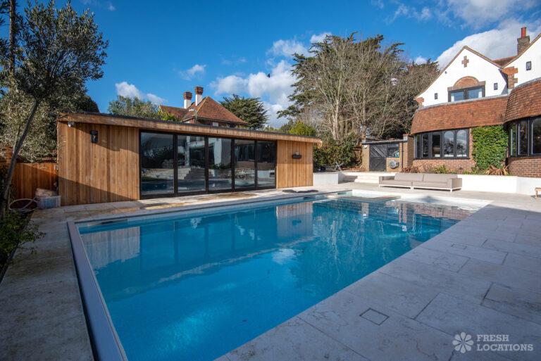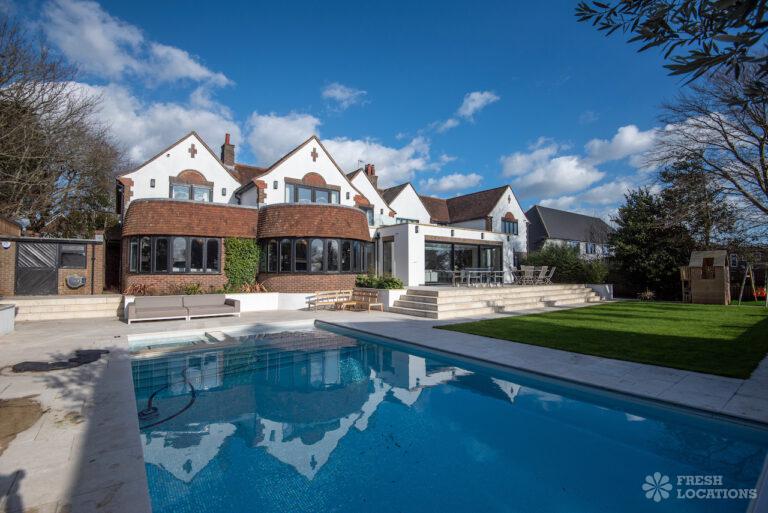 Wood Floors, Balcony, Dark Wood Floor, Decked Terrace, Driveway, Ensuite, Fireplace, Garage, Garden, Island Kitchen, Large Bathroom, Large Bedroom, Large Driveway, Large Kitchen, Open Plan, Panelling, Parquet Floor, Skylights, Staircase, Summer House, Swimming Pool, Tiled Floor, Walk In Shower, Walk In Wardrobe6 bedroom detached house, mock tudor, recently renovated. Garden, outside pool, hot tub, poolhouse. Gated driveway.