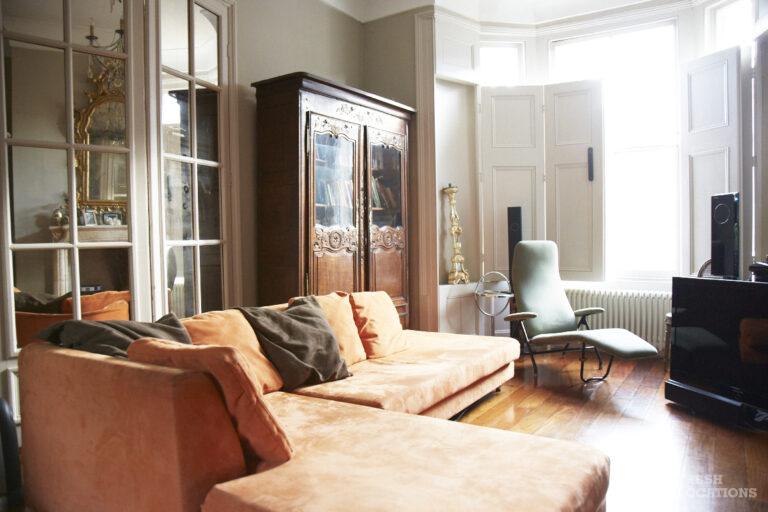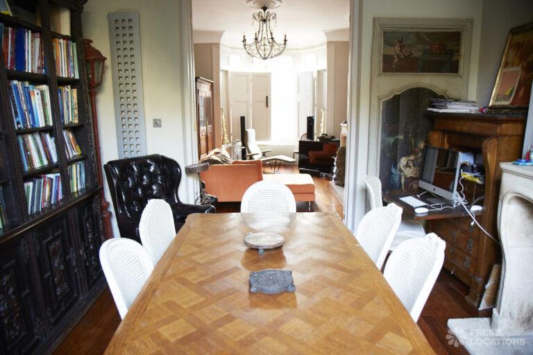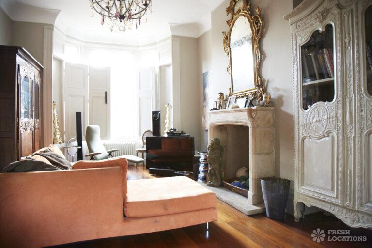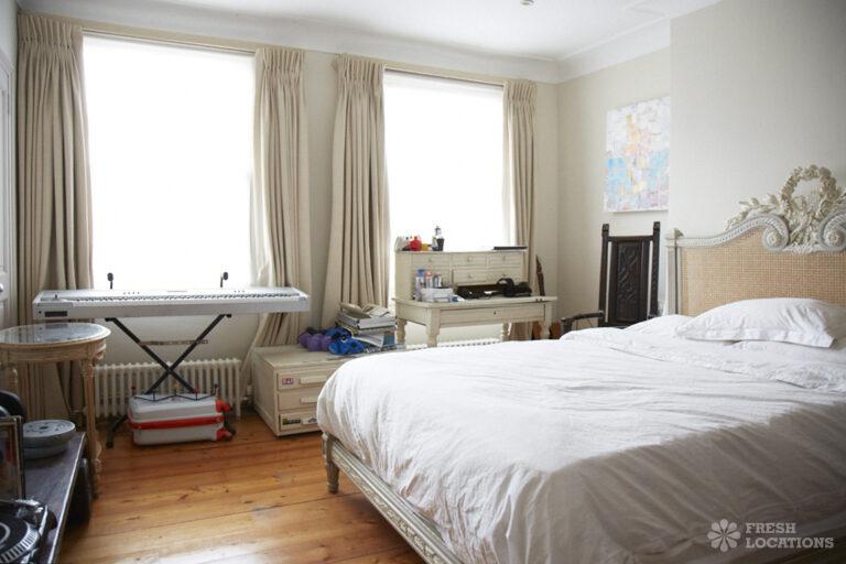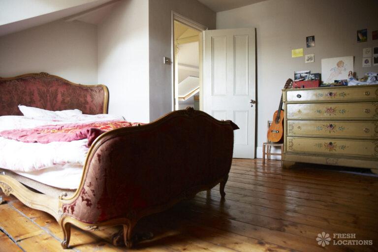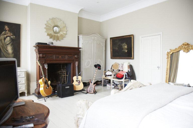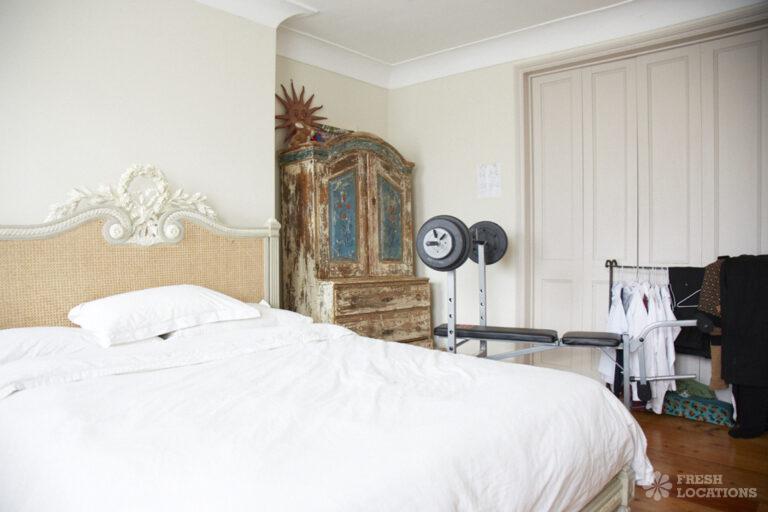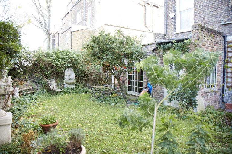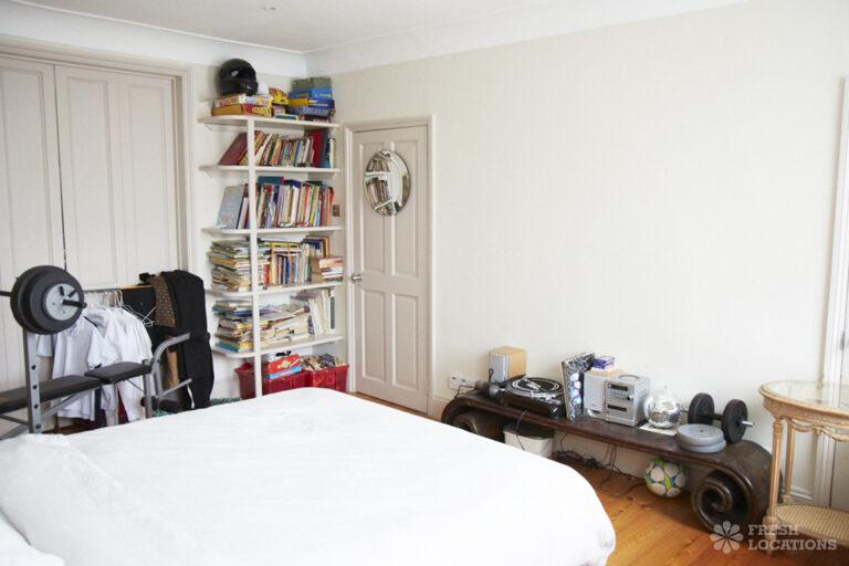 Wood Floors, Ensuite, Fireplace, Garden, Large Bedroom, Open Plan, Painted Floors, Skylights, Staircase, Walk In ShowerLarge North London town house. Set over 4 floors with 5 bedrooms and an eclectic mix of modern and antique decor. Features such as 19th Century mirrored french doors, carved stone fireplaces, stained glass window and a large garden. London Borough of Islington.