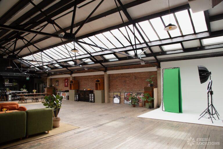 Characterful daylight studio space in East London. Featuring exposed brick, skylights, and an open plan layout, it’s the perfect backdrop for photoshoots and events. London Borough of Hackney.