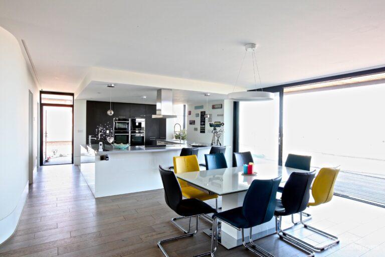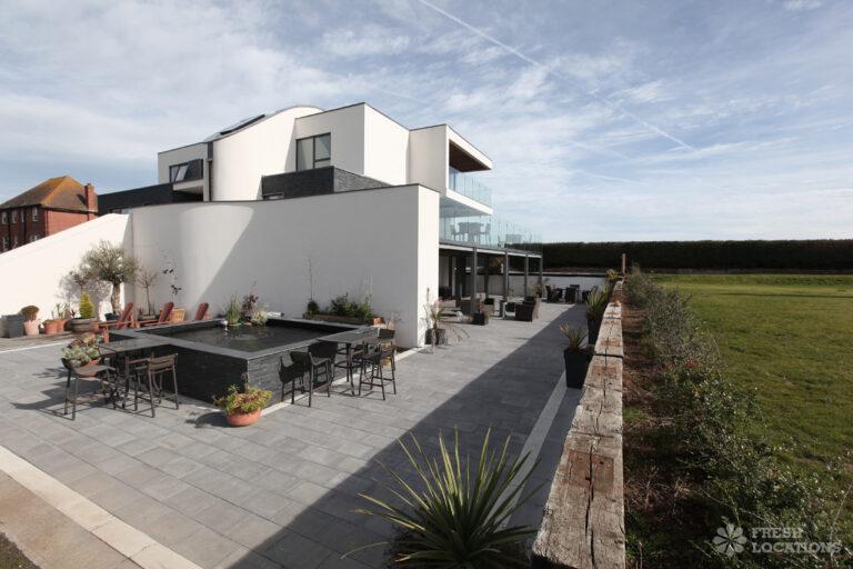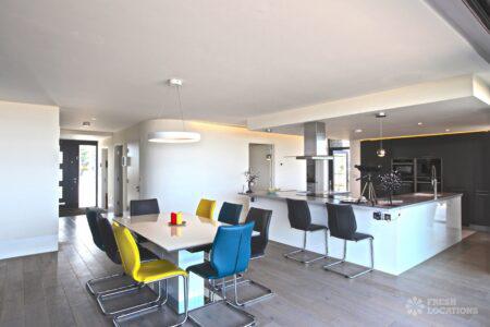 Balcony, Driveway, Full Height Windows, Island Cooker, Island Kitchen, Large Bathroom, Large Kitchen, Light Wood Floor, Open Plan, Panelling, Staircase, Unrestricted Parking, Wood FloorsThis modern beach house has six bedrooms, five bathrooms, an open plan kitchen living room and stunning seaside views.
