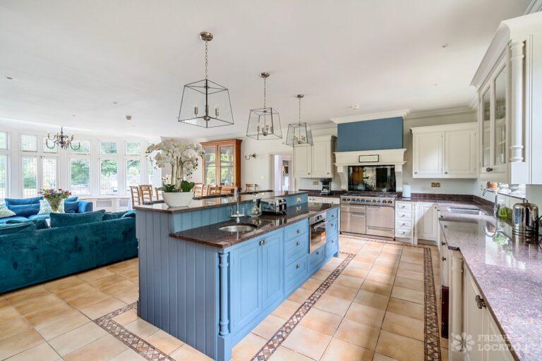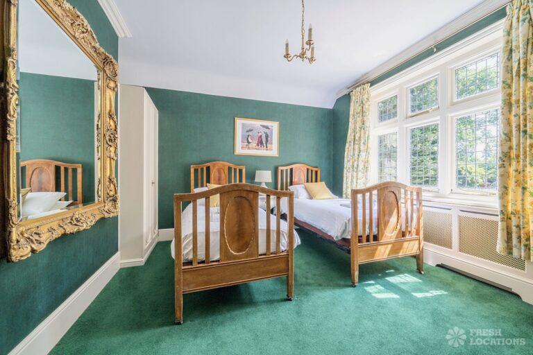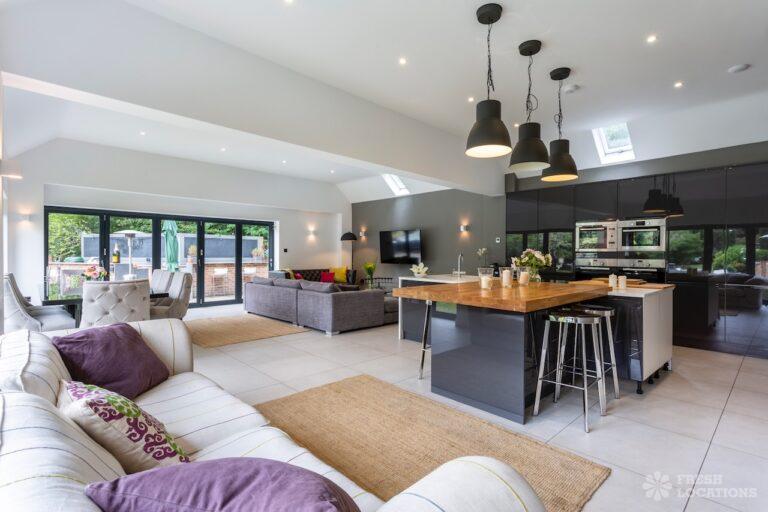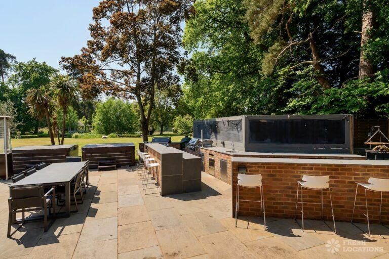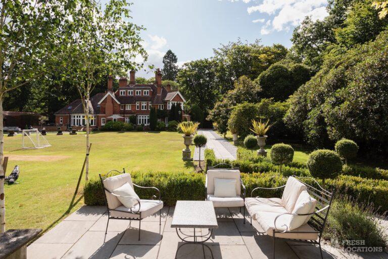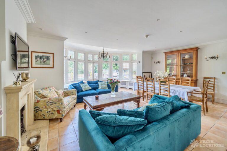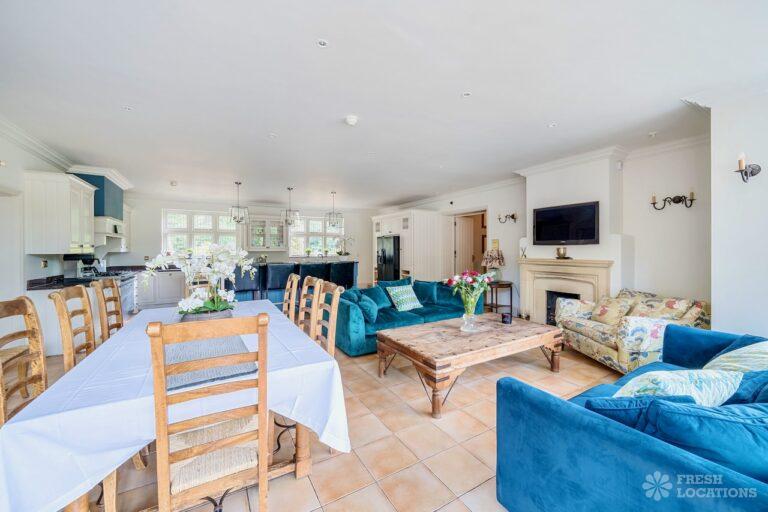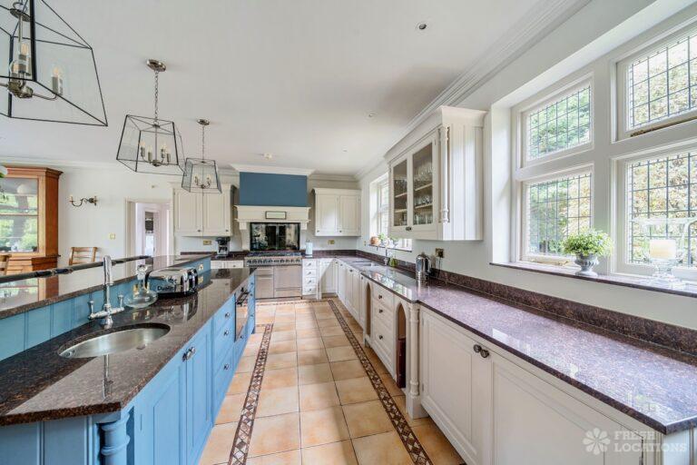 Light Wood Floor, Bay Window, Ensuite, Fireplace, Garage, Garden, Island Kitchen, Large Bedroom, Large Driveway, Large Kitchen, Multiple Bathrooms, Multiple Bedrooms, Multiple Kitchens, Multiple Living Rooms, Open Plan, Skylights, Swimming Pool, Tennis Court, Tiled Floor, Walk In ShowerVery large country house shoot location. Featuring spacious kitchen diner with double doors opening out onto the garden. Two additonal kitchens, 12 bedrooms and multiple living rooms. The property is set amongst 6 acres of grounds containing an outdoor swimming pool and a lake.