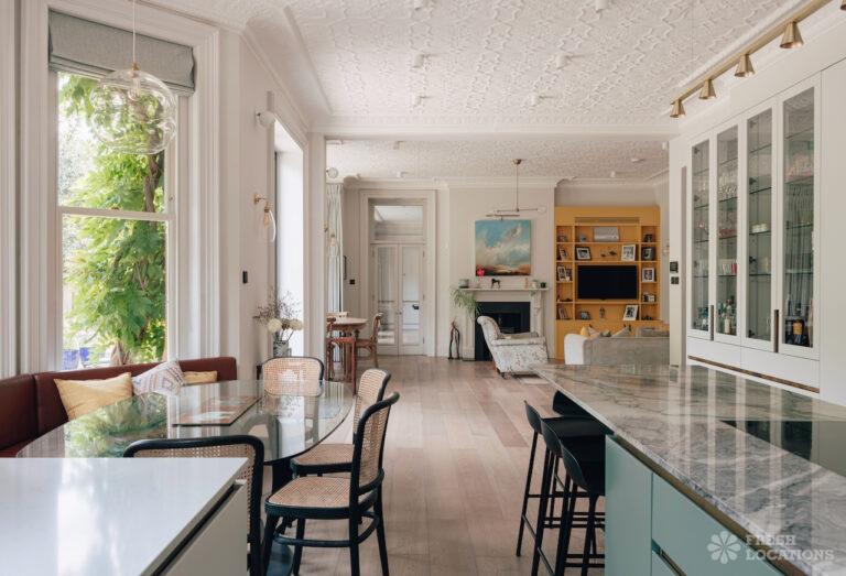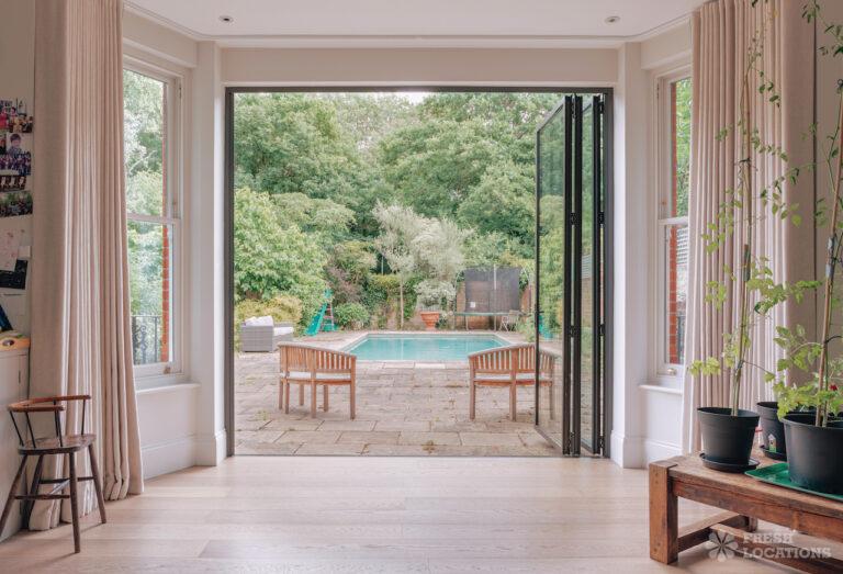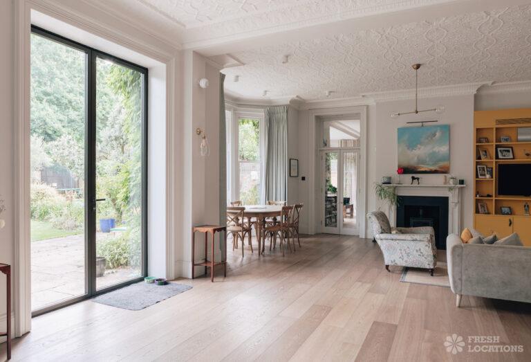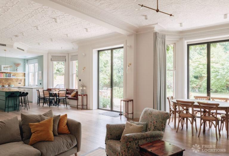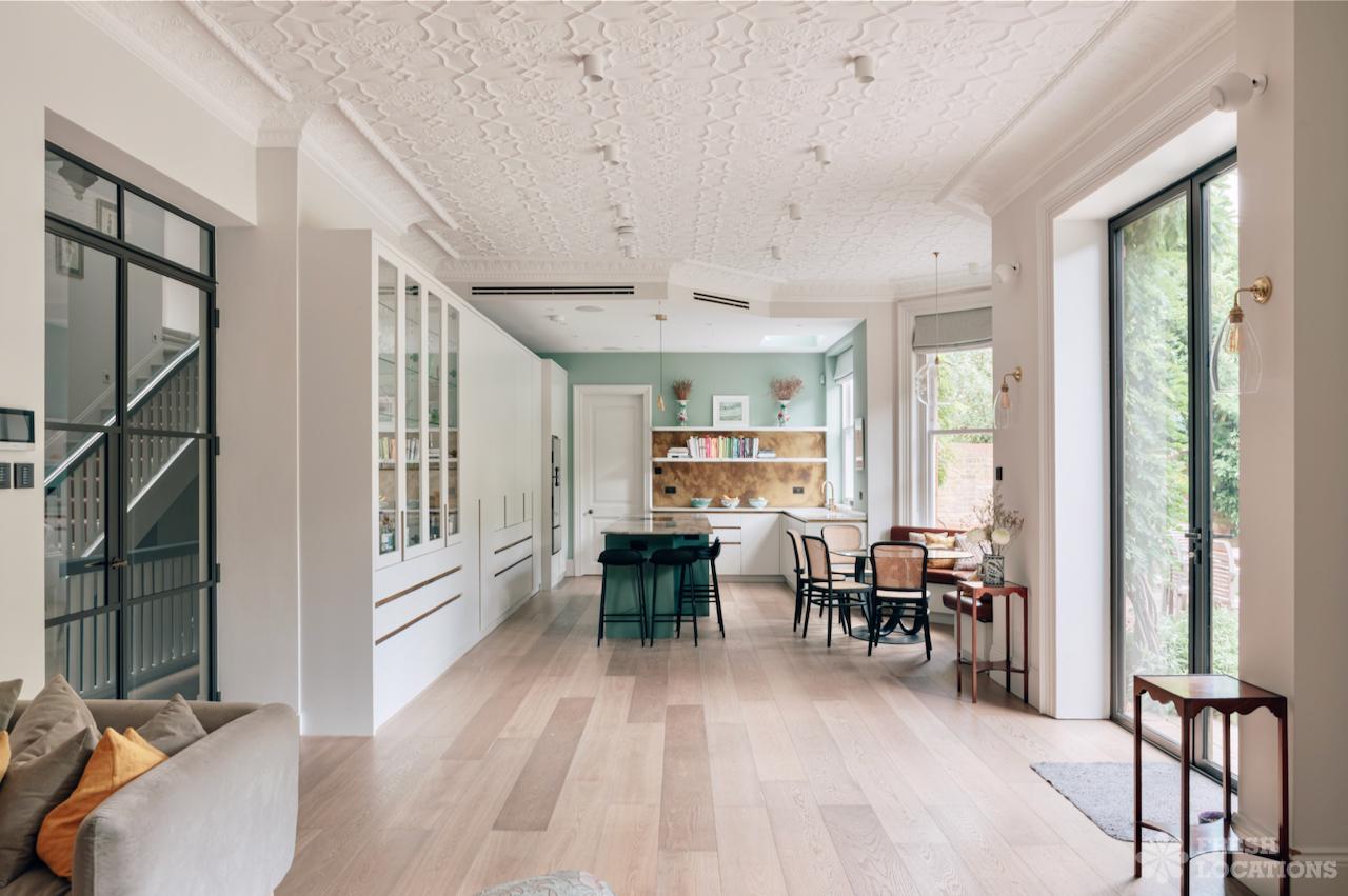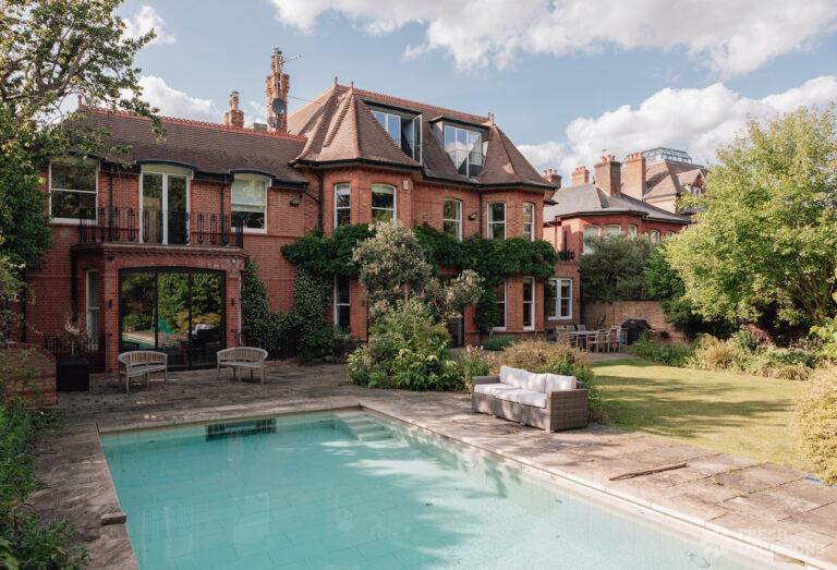 Balcony, Bay Window, Colourful Kitchen, Driveway, Fireplace, Front Garden, Garage, Garden, Home Gym, Inglenook Fireplace, Island Cooker, Island Kitchen, Large Bedroom, Large Garden, Light Wood Floor, Multiple Bathrooms, Multiple Bedrooms, Parquet Floor, Skylights, Staircase, Swimming Pool, Tiled Floor, Walk In Shower, Wood FloorsLoxley is an impressive 8,500 sq ft family home in South West London, backing directly onto Wandsworth Common. The house blends contemporary interiors with elegant period details, including a striking original Victorian ceiling in the main living space. With high ceilings, abundant natural light, and multiple bedrooms and bathrooms, it offers both character and versatility. Highlights include a basement gym, beautiful front garden, large verdant back garden, and an outdoor swimming pool. London Borough of Wandsworth.