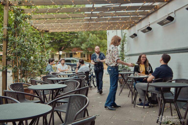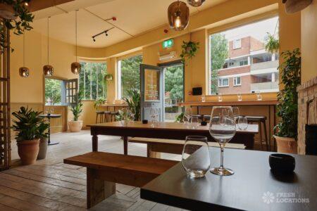 Beautiful wine bar in South West London with a lovely outdoor terrace. Elegant, open plan main space featuring wooden floors, high ceilings and plenty of natural light. London Borough of Wandsworth.