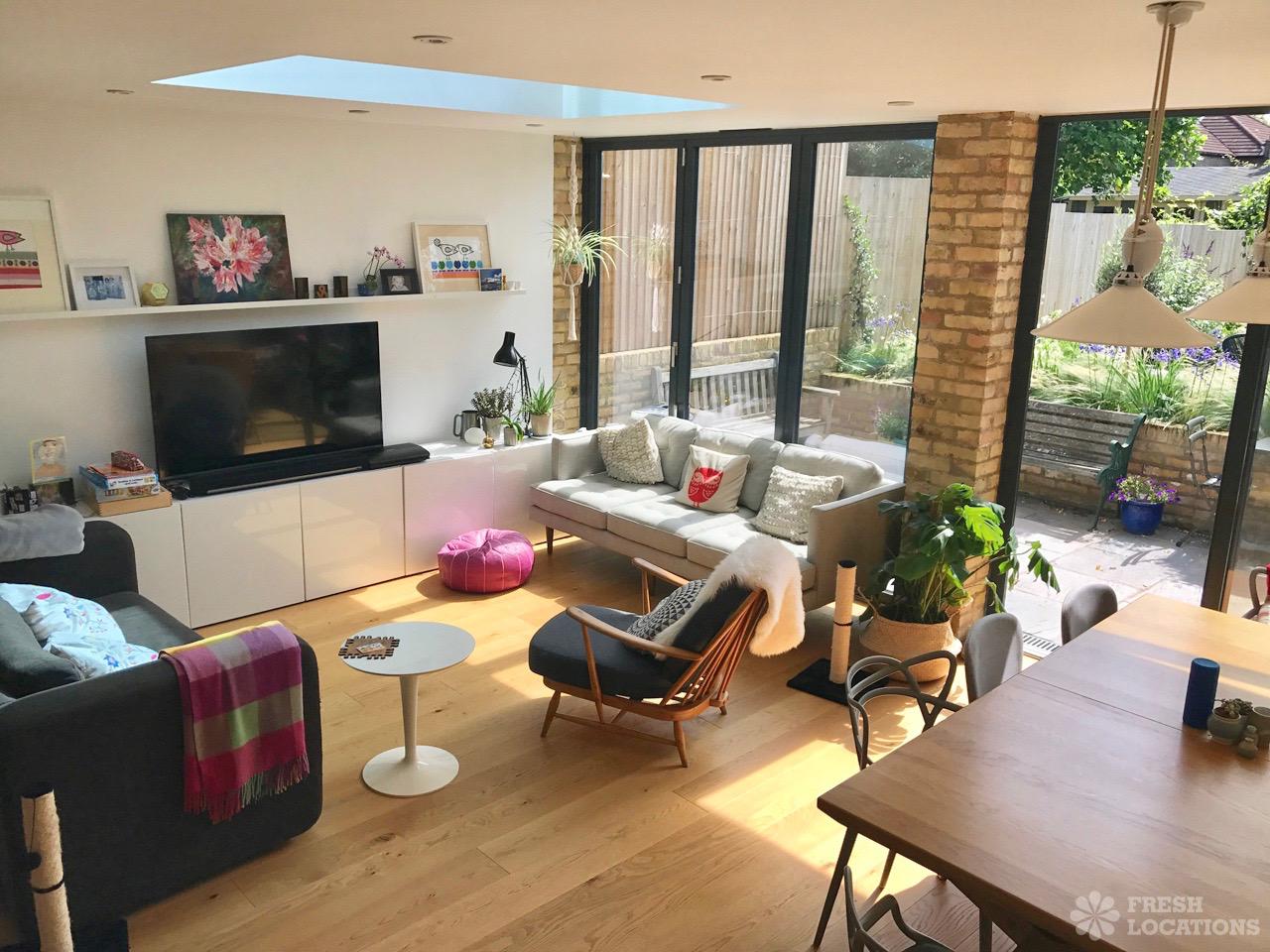 Wood Floors, Driveway, Fireplace, Full Height Windows, Island Cooker, Island Kitchen, Light Wood Floor, Open Plan, Skylights, Tiled Floor, Unrestricted Parking, White KitchenEdwardian semi-detached family home set over 4 floors. Open plan kitchen/dining/living with bi fold doors opening out to a garden with patio area. Two reception rooms, spacious bedrooms and large main bathroom. No parking restrictions on the road. 25 minute train to Waterloo. London Borough of Kingston.