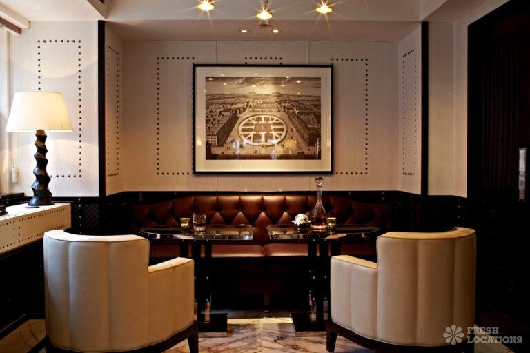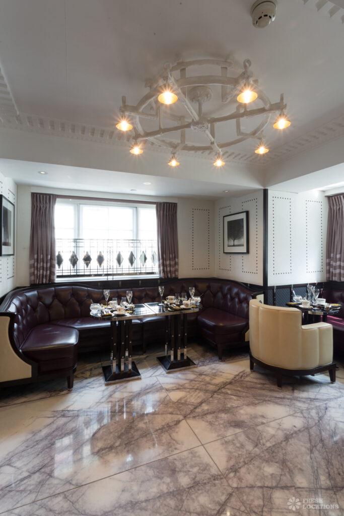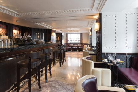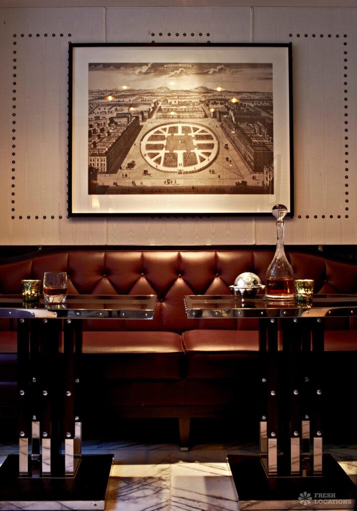 Intimate cocktail bar within a luxury hotel in Mayfair. Draws the spirit of the Roaring Twenties with fine liquor displays, handmade wine cabinets, period features and marble floors. City of Westminster.