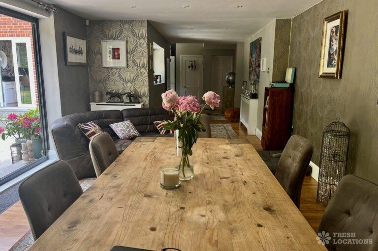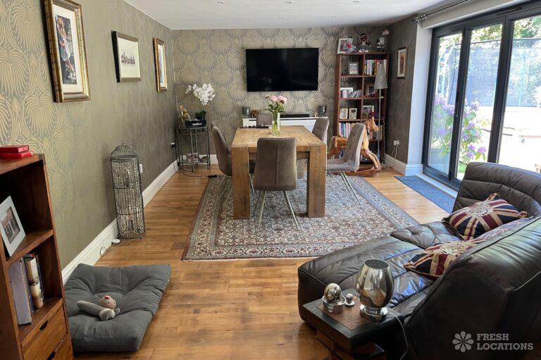 Multiple Bedrooms, Driveway, Ensuite, Garden, Large Driveway, Large Garden, Multiple Living Rooms, Staircase, Wood FloorsA lived in family house shoot location in Surrey. It features two reception rooms, a dining room, a kitchen, multiple bedrooms and a large garden with side access. Driveway with space for five cars.