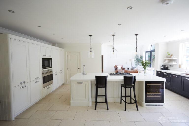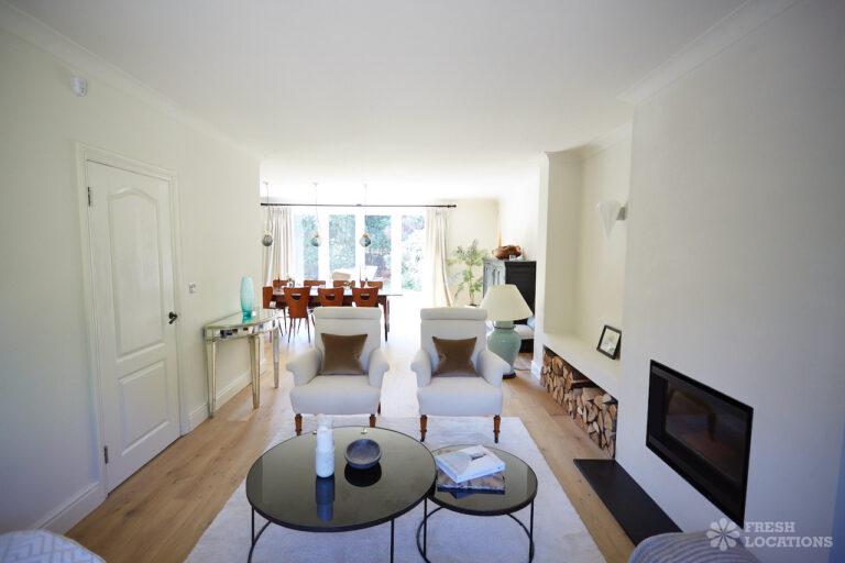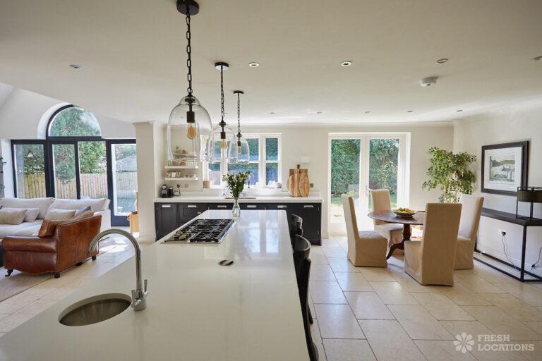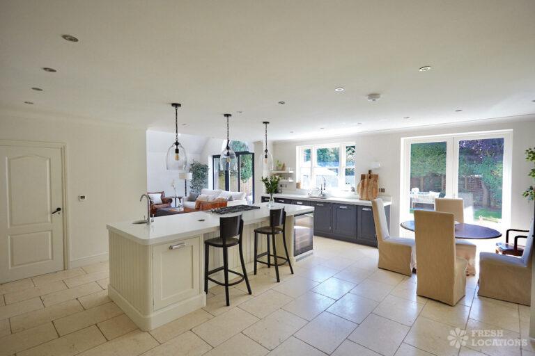 Wood Floors, Ensuite, Fireplace, Garage, Garden, Gas Hob, Island Cooker, Island Kitchen, Large Bedroom, Large Driveway, Open Plan, Tiled Floor, Walk In Shower, White KitchenSpacious family home shoot location in Egham. Featuring large open plan island kitchen/diner/living area that opens out on to garden with patio. Six bedrooms including a children’s bedroom. Garage and large driveway.