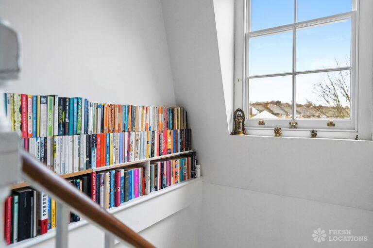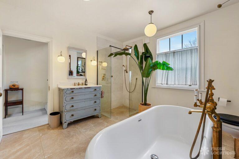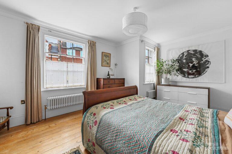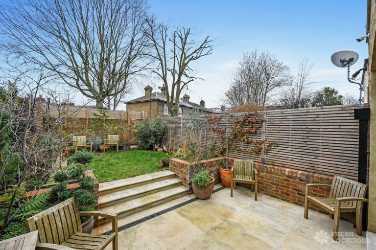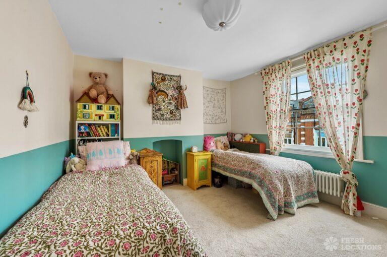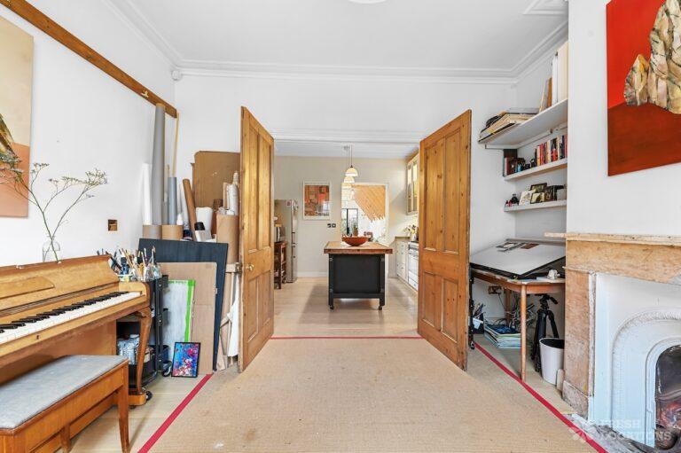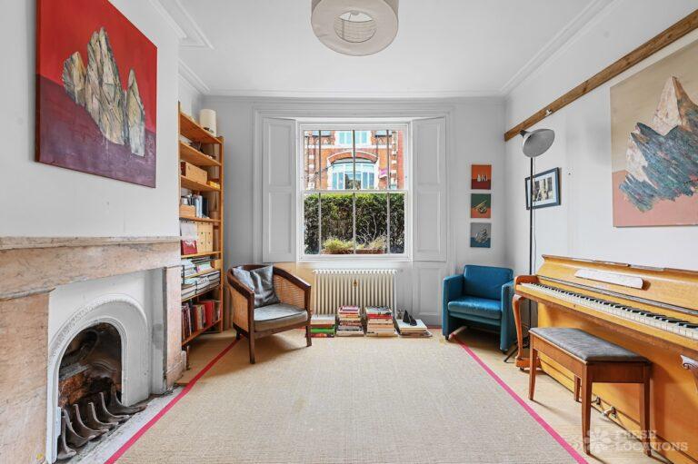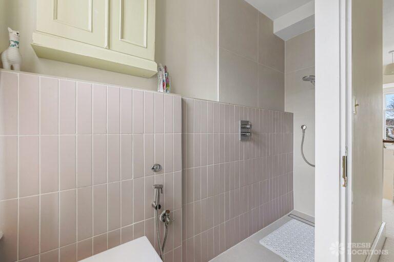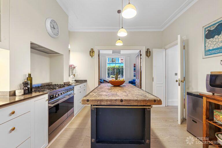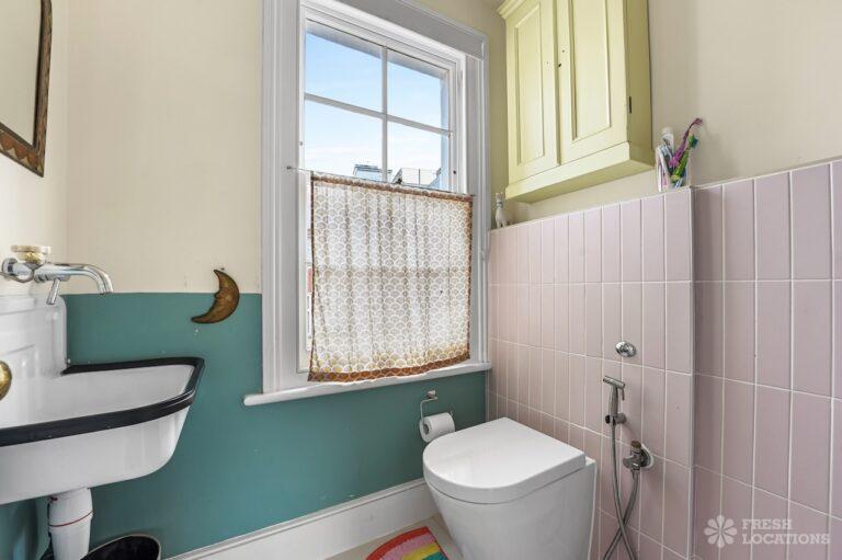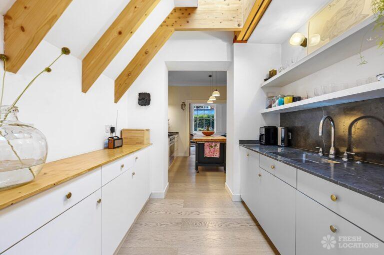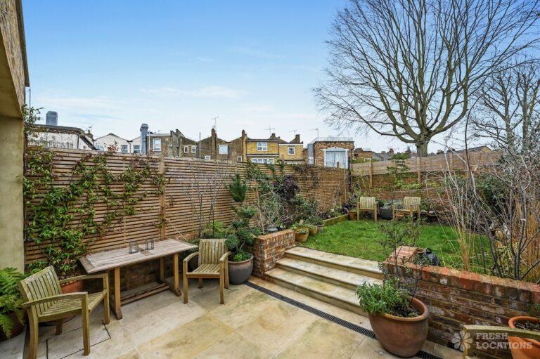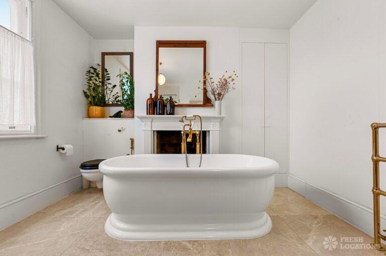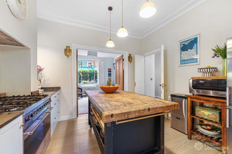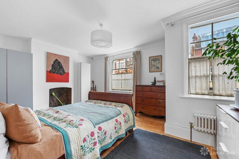Exposed Beams, Fireplace, Garden, Large Bathroom, Light Wood Floor, Multiple Bathrooms, Staircase, Walk In Shower, Wood FloorsA late Georgian house with a modern extension in North London. This unique shoot location offers a blend of rustic charm and modern elegance, featuring exposed wooden beams, eclectic furnishings, and an abundance of natural light. The open-plan living and dining area boasts a striking vaulted ceiling with warm timber details, while the stylish bathroom pairs vintage touches with contemporary finishes. A characterful bedroom with rich wooden floors and carefully curated decor completes the space, making it an ideal backdrop for lifestyle, fashion, and interior shoots. London Borough of Haringey.