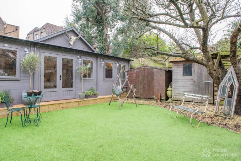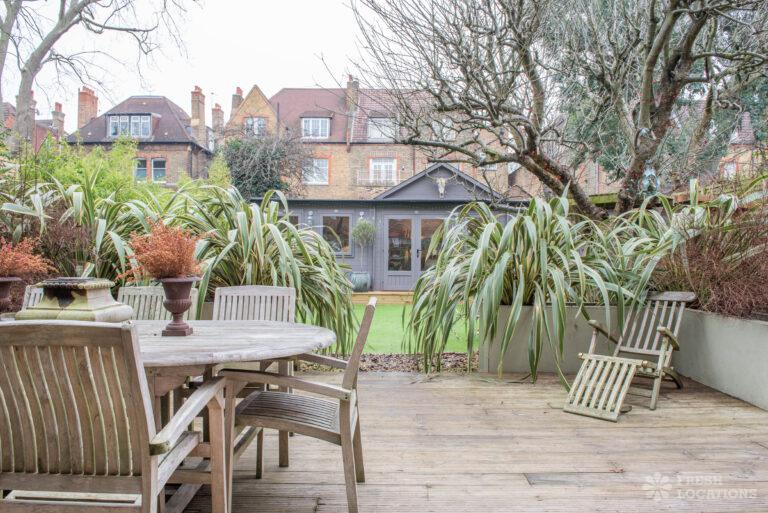 Wood Floors, Decked Terrace, Driveway, Ensuite, Fireplace, Garden, Large Bathroom, Open Plan, Painted Floors, Summer House, Unrestricted ParkingDetached, double fronted family home in South West London. Two beautiful sitting rooms with original cornicing, stone fireplaces and painted wooden floorboards. Kitchen diner overlooking a spacious garden with a large decked terrace, artificial grass lawn and a large log cabin. London Borough of Lambeth.
