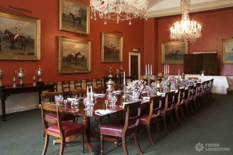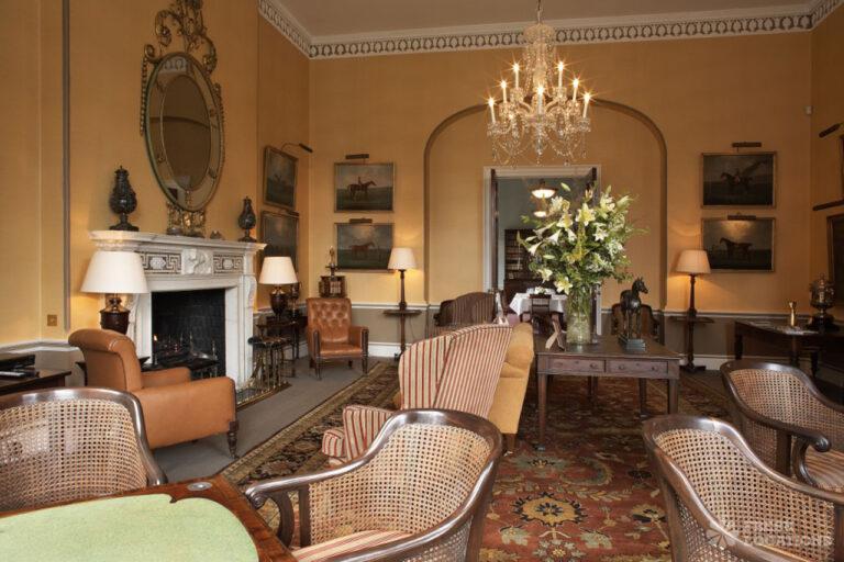 An elegant venue in Suffolk with various reception rooms traditionally styled with antique furniture and ornate fireplaces.