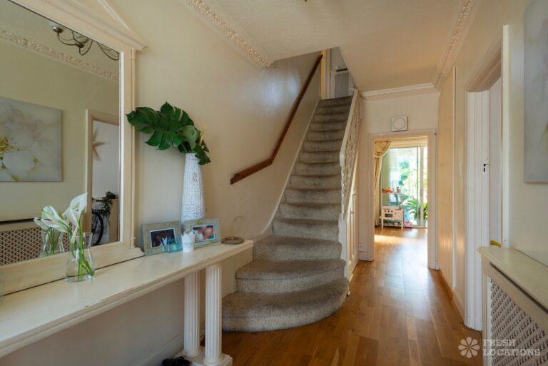Wood Floors, Balcony, Fireplace, Full Height Windows, Garden, Light Wood Floor, Overgrown Garden, Staircase, Tiled Floor, Walk In ShowerThis lived-in, family home backs on to Norbury Park. The living area has two sets of sliding doors leading to a dining area and then to the large garden. Multiple bedrooms including children’s. London Borough of Croydon.