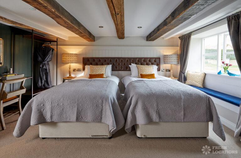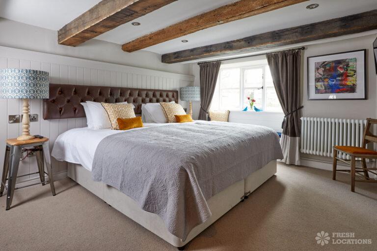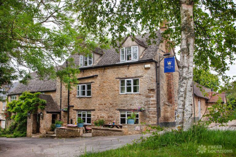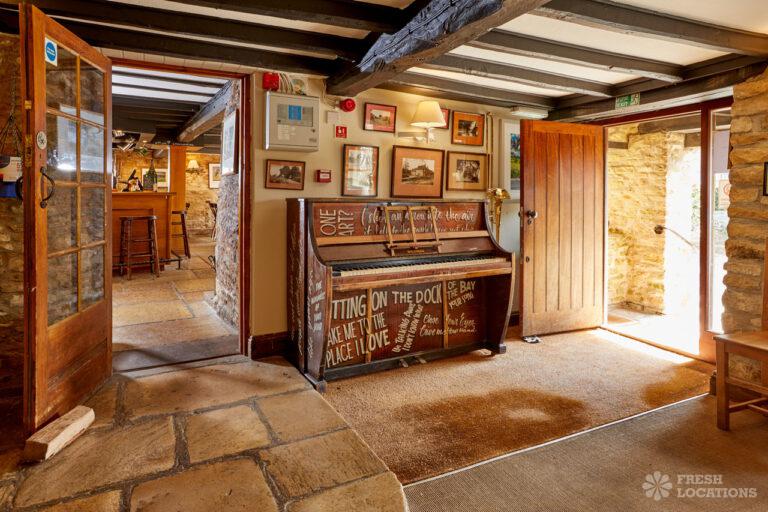 Traditional Cotswolds Pub shoot location in Oxfordshire. Exposed beams, brick walls and stone floors throughout. Available as a shoot and stay location.