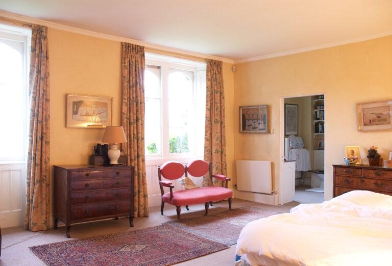 Wood Floors, Courtyard, Dark Wood Floor, Driveway, Ensuite, Fireplace, Garden, Large Bedroom, Open Plan, StaircaseEarly Victorian Rectory in Oxfordshire with Stables and a lake, surrounded by countryside. Traditional interior throughout.