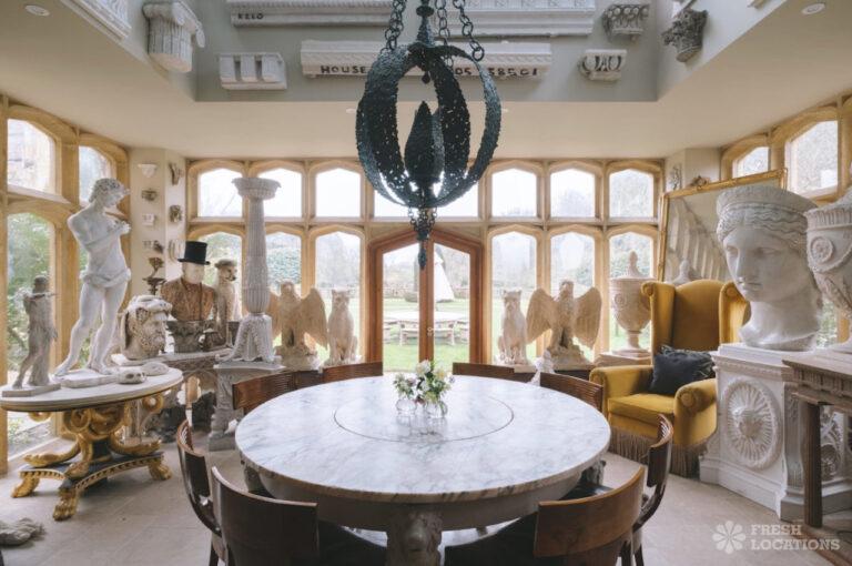Fireplace, Island Cooker, Island Kitchen, Large Bedroom, Large Garden, Staircase, Tiled Floor, Walk In Shower, Wood FloorsGrade 1 stately home in Dorset. This shoot location features three large bedrooms, a mezzanine kitchen and orangery. The grounds include a lake, river, waterfall, fountains and a lime tree-lined drive.