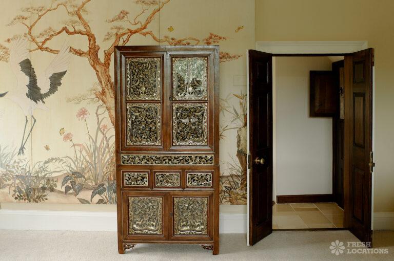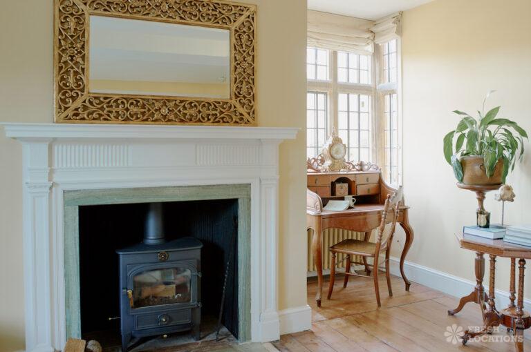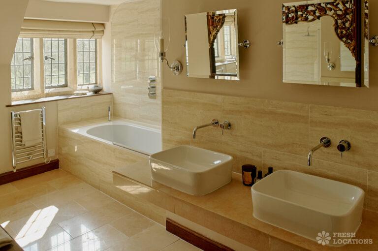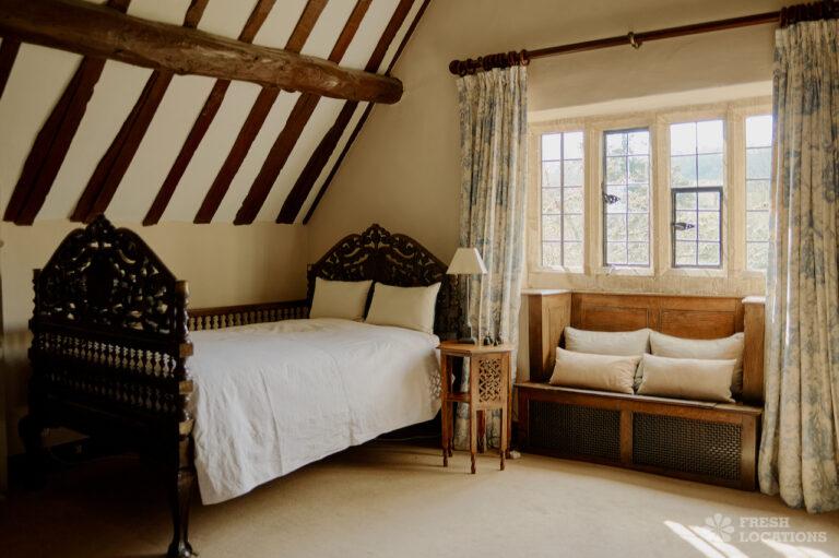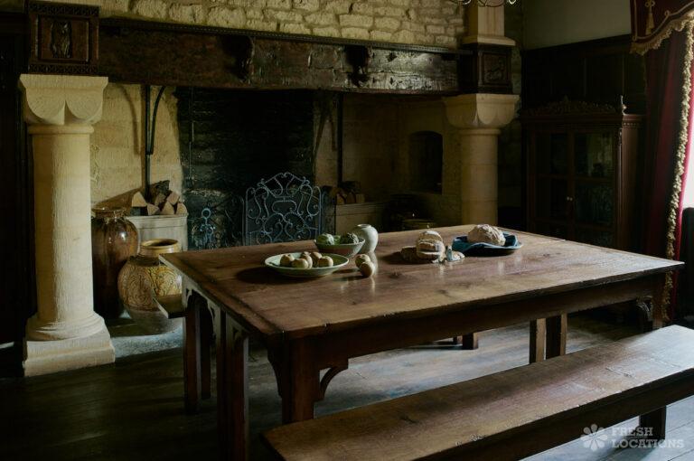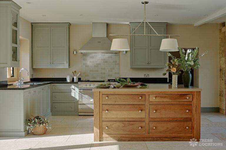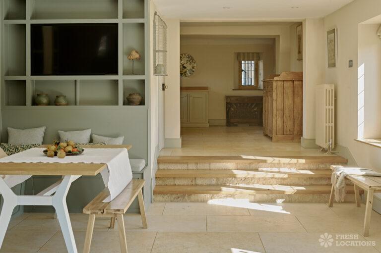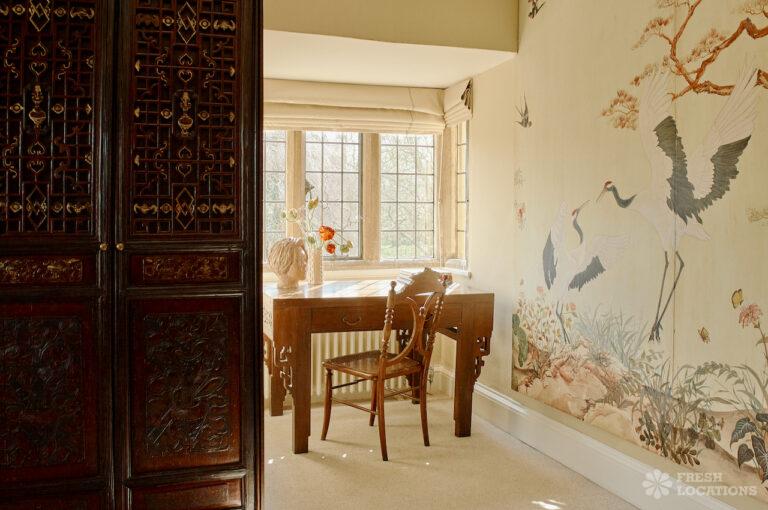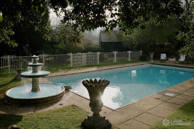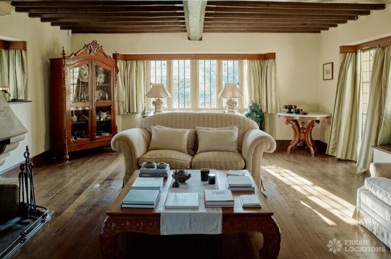 Colourful Kitchen, Dark Wood Floor, Driveway, Ensuite, Exposed Beams, Fireplace, Garden, Greenhouse, Island Kitchen, Large Garden, Light Wood Floor, Multiple Bedrooms, Multiple Kitchens, Swimming Pool, Tiled Floor, Wood FloorsThis location is a beautiful Grade II listed 17th-century Cotswold mansion, offering a wealth of elegant spaces for film and photography shoots. With ten bedrooms, five reception rooms, and a beautifully refurbished interior that blends classic English country style with Asian influences, the property provides a rich variety of backdrops. The spacious, light-filled kitchen, formal dining room with an inglenook fireplace, and grand yet cozy living areas make it ideal for lifestyle and editorial shoots. Outside, two acres of formal gardens, a croquet lawn, and a seasonal heated swimming pool add to its charm.