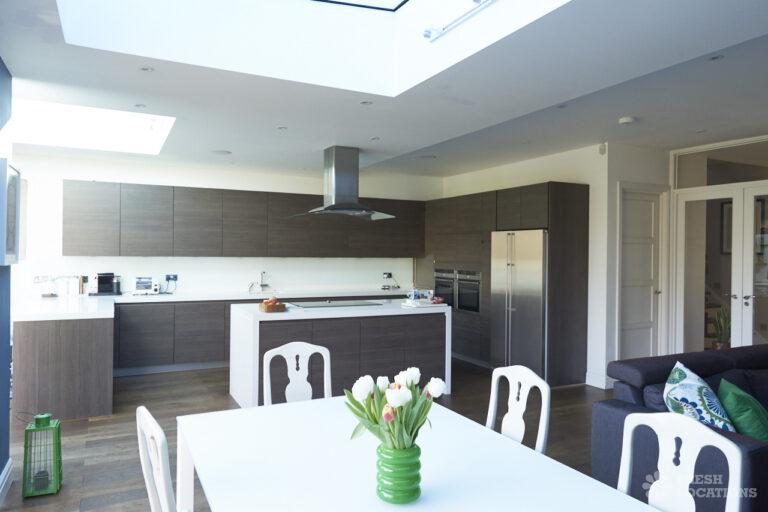 Wood Floors, Bay Window, Driveway, Ensuite, Exposed Brick, Fireplace, Garden, Island Cooker, Island Kitchen, Large Kitchen, Light Wood Floor, Open Plan, Skylights, Unrestricted Parking, Walk In ShowerLovely detached family home located in North London. The ground floor holds a large open plan kitchen/living space as well as another separate living room and a home office. Spread across the first and second floors are three bedrooms, one master bedroom, one boy’s room and one girl’s room, four bathrooms and a second home office/living room. London Borough of Barnet.