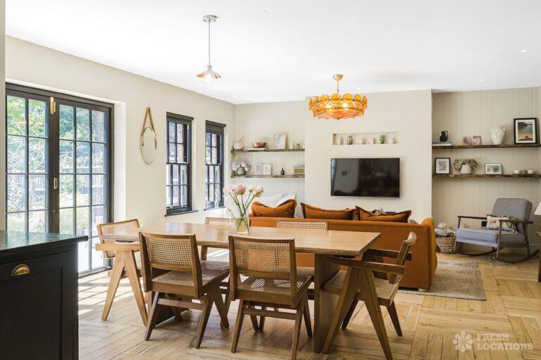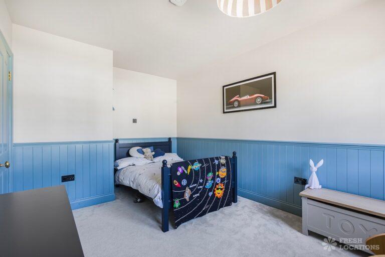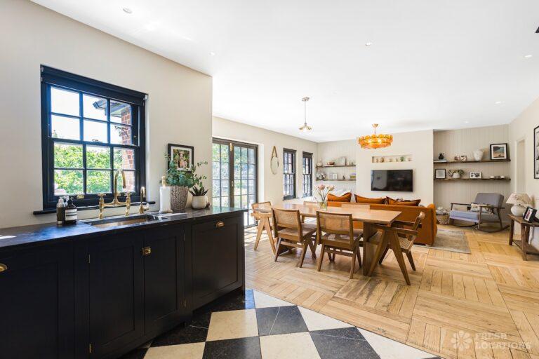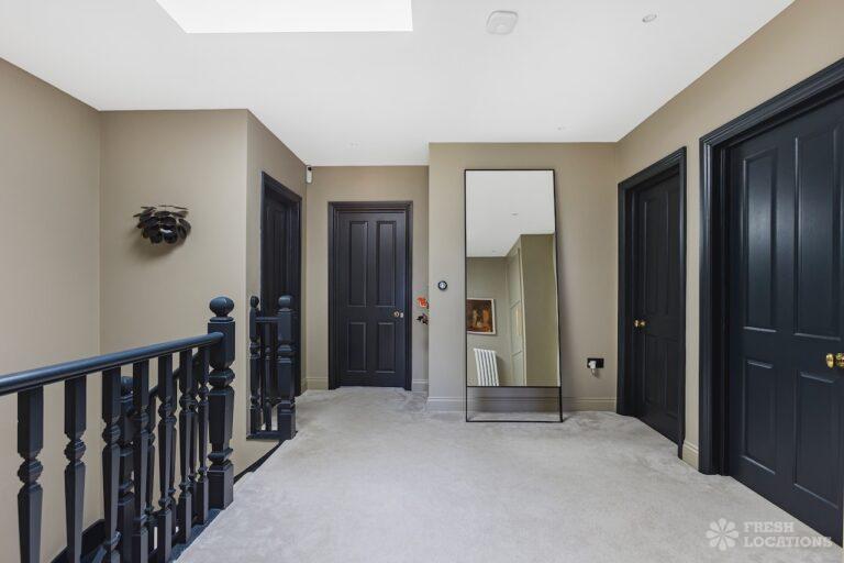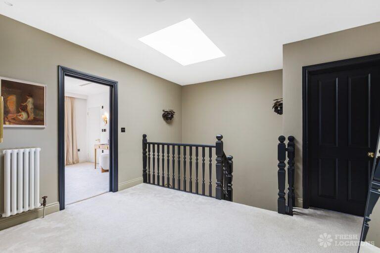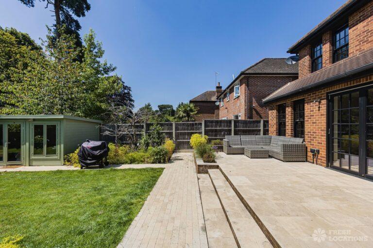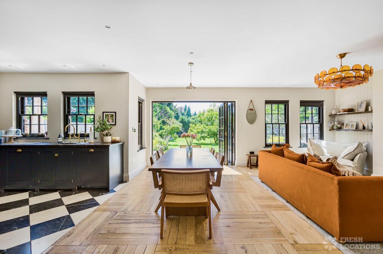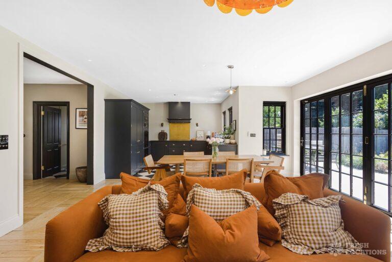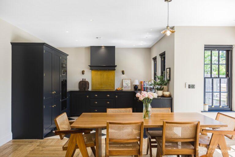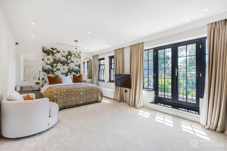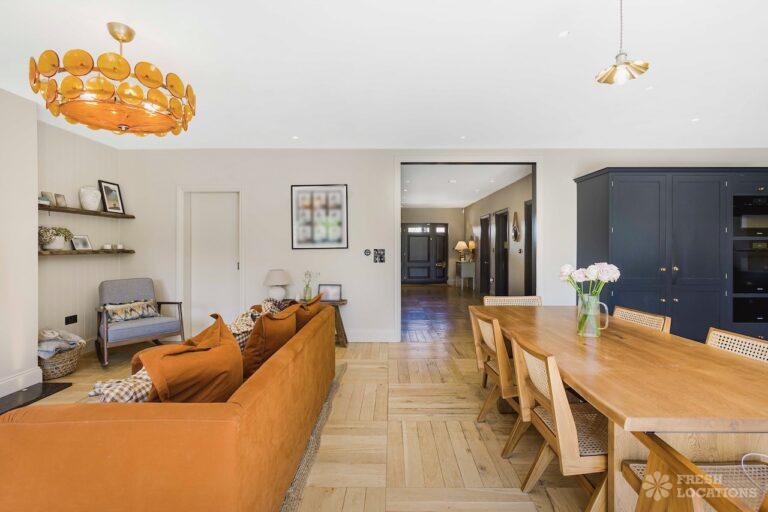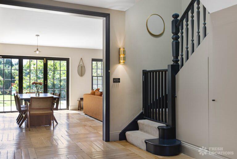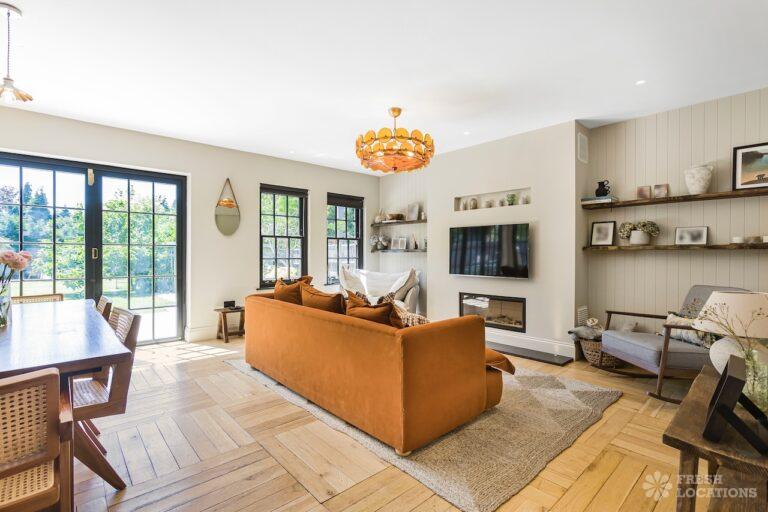 Garden, Large Bedroom, Large Garden, Light Wood Floor, Marble Floor, Staircase, Walk In Shower, Wood FloorsA detached four-bedroom home inside the M25, featuring a spacious master bedroom, a charming children’s room, and a stylish open-plan living, kitchen, and dining area. The modern kitchen boasts dark units with striking black-and-white flooring, while the living space is enhanced by rich wood floors and bifold doors that open to a large, lush garden. With its sleek design and family-friendly charm, this property offers versatile indoor and outdoor shoot opportunities.