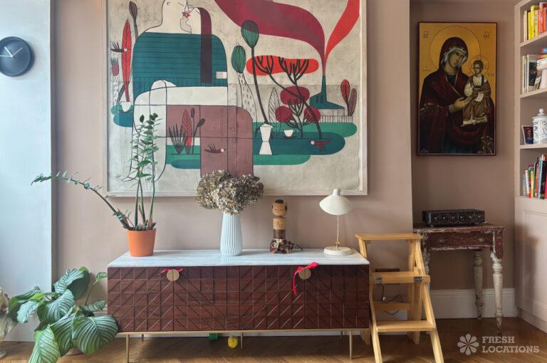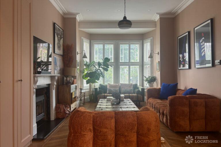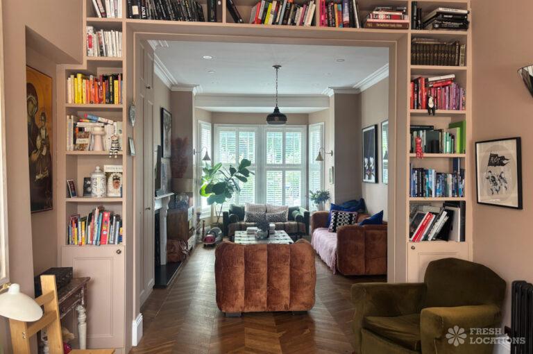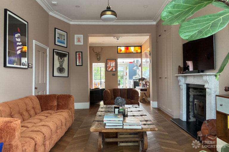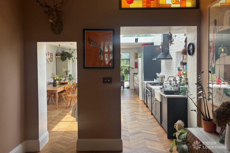 Wood Floors, Bay Window, Colourful Kitchen, Crittall, Dark Wood Floor, Driveway, Ensuite, Fireplace, Garden, Gas Hob, Island Kitchen, Large Bedroom, Light Wood Floor, Multiple Bedrooms, Parquet Floor, Skylights, Staircase, Summer House, Tiled Floor, Walk In Shower, Wood PanelledSemi-detached, family home shoot location in North London. This property has a large open kitchen / diner with crittall doors leading to a spacious garden, which features a summer house. Upstairs rooms include three bedrooms, three bathrooms and a study, where colourful elements are spread throughout. London Borough of Haringey.