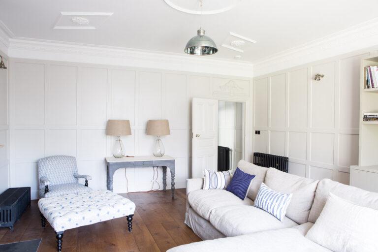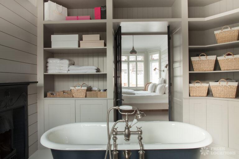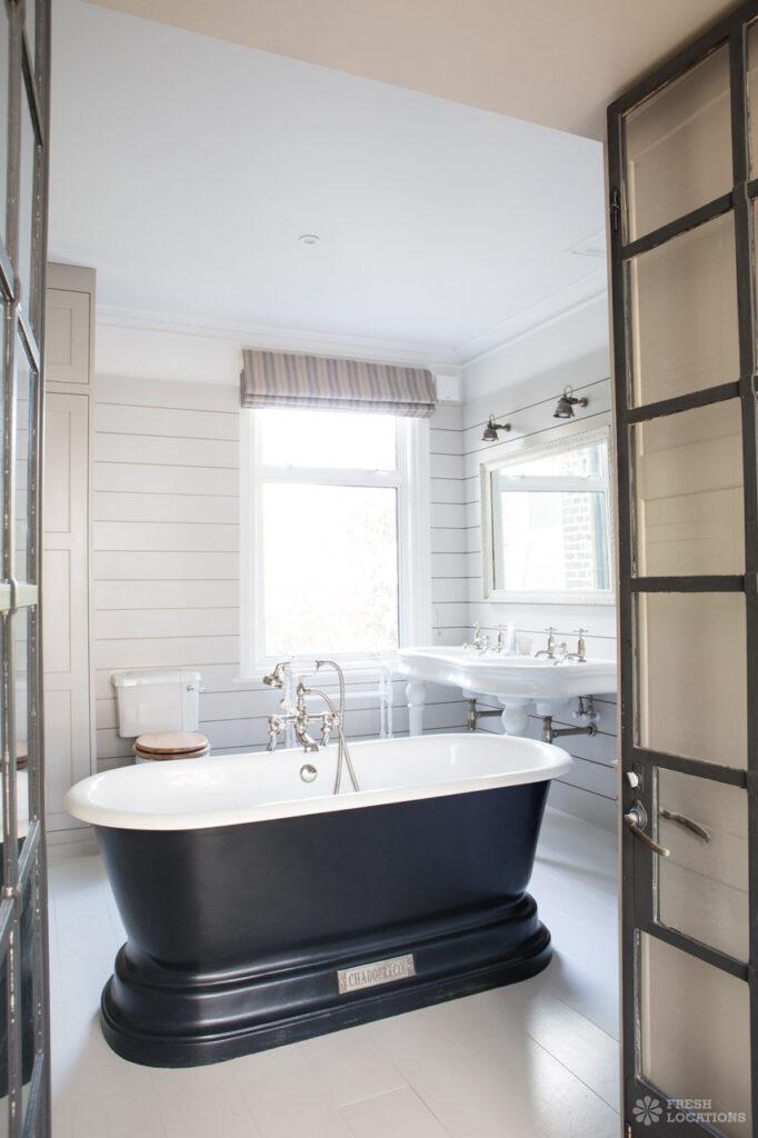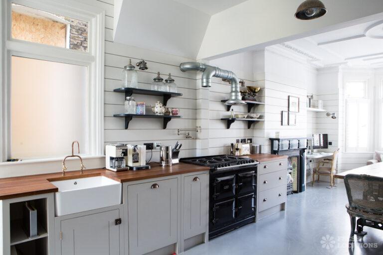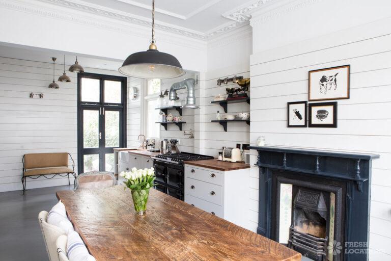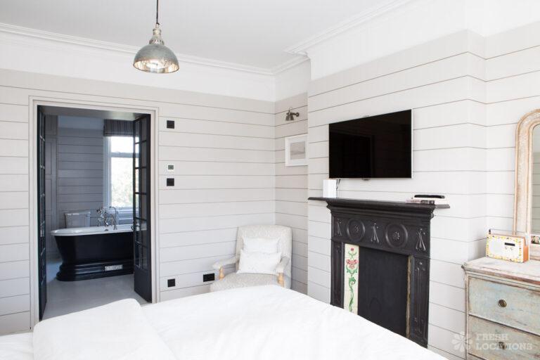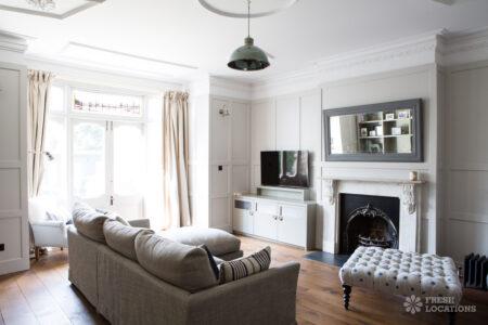 Wood Floors, Aga, Bay Window, Driveway, Ensuite, Fireplace, Garden, Gas Hob, Large Kitchen, Light Wood Floor, Open Plan, Panelling, Staircase, Summer House, Unrestricted Parking, Walk In ShowerLarge semi-detached house in Streatham. Neutral decor throughout. Polished concrete floors and horizontal cladding on the walls in the kitchen. The living room has panelling to all walls, a marble fireplace and wide floorboards. Master bedroom with crittal doors leading to a beautiful bathroom with a freestanding bath. London Borough of Lambeth.