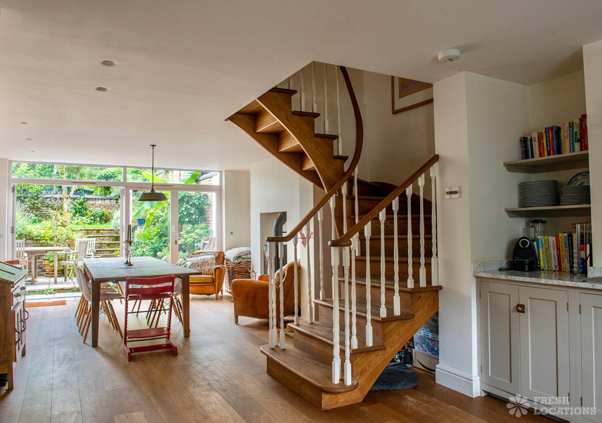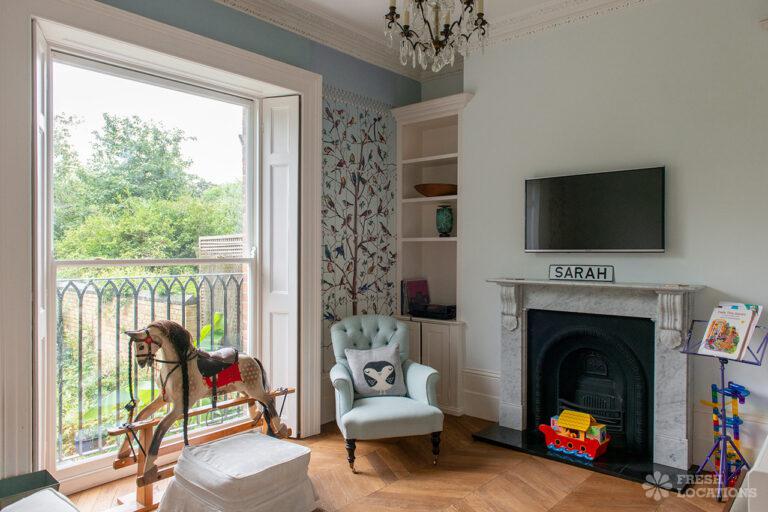 Aga, Courtyard, Ensuite, Fireplace, Garden, Parquet Floor, Staircase, Tiled Floor, Walk In Shower, Wood FloorsLarge family home shoot location. Five story house featuring kitchen/diner, multiple living rooms, several bedrooms including a children’s bedroom. Driveway. London Borough of Richmond upon Thames.