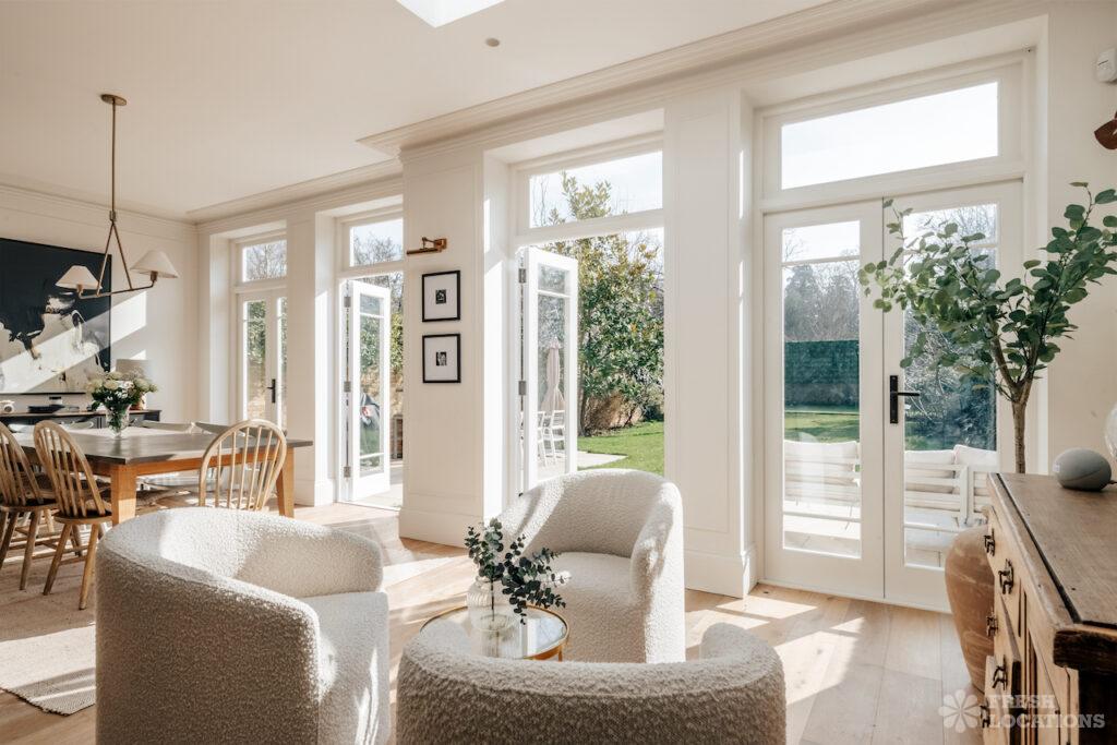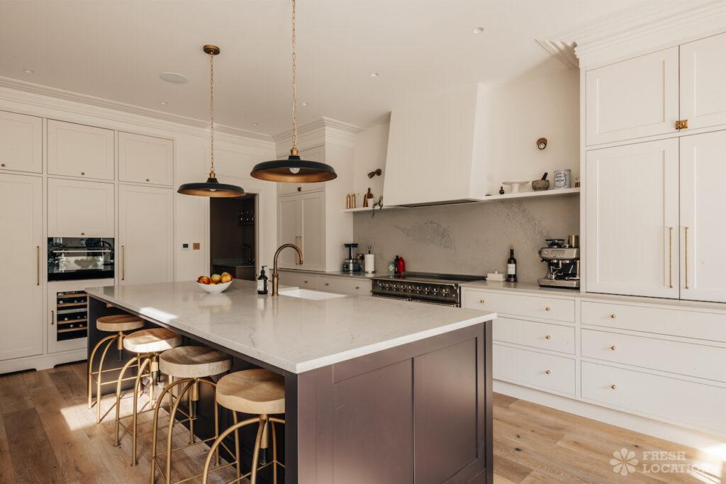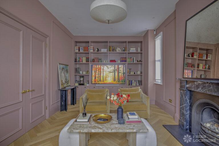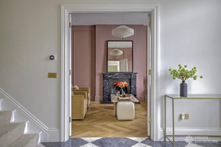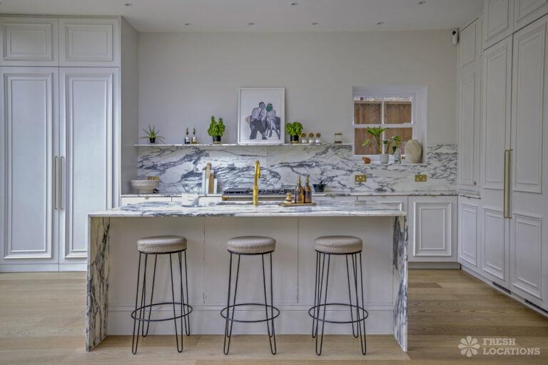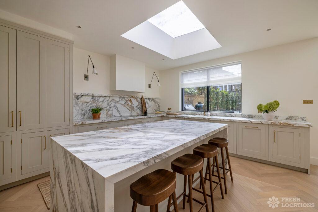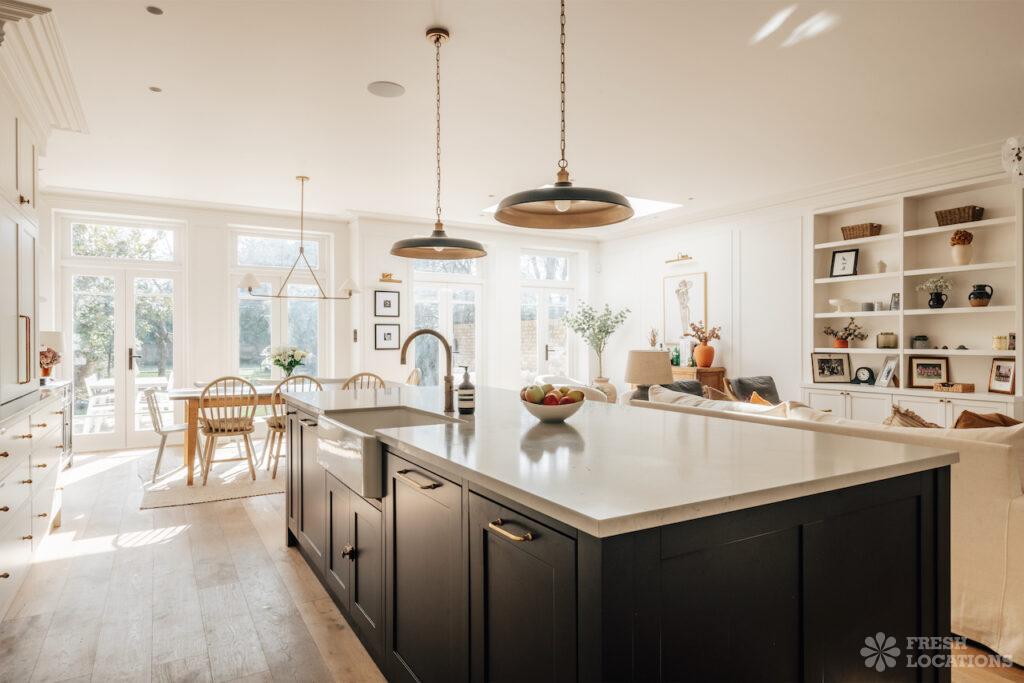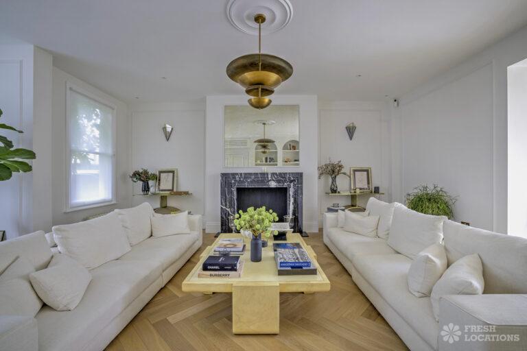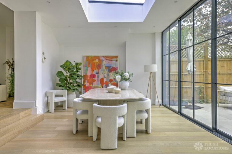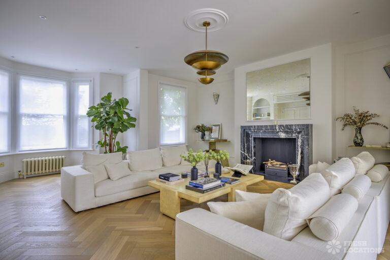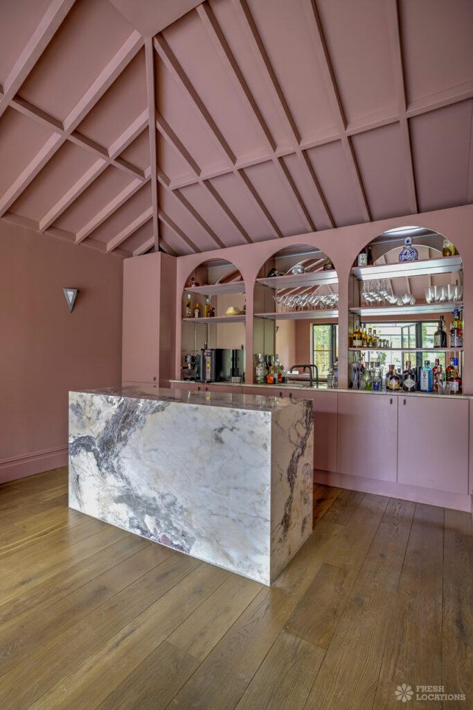 Crittall, Ensuite, Home bar, Island Kitchen, Large Kitchen, Light Wood Floor, Multiple Bathrooms, Parquet Floor, Staircase, Swimming Pool, Tiled Floor, Walk In Shower, Walk In Wardrobe, Wood FloorsA double-fronted detached house located in the London borough of Hounslow, featuring five bedrooms and bathrooms, a beautiful island kitchen with marble countertops, and elegant light filled interiors throughout. The property also boasts a large garden with a swimming pool, offering a luxurious and versatile setting for shoots.