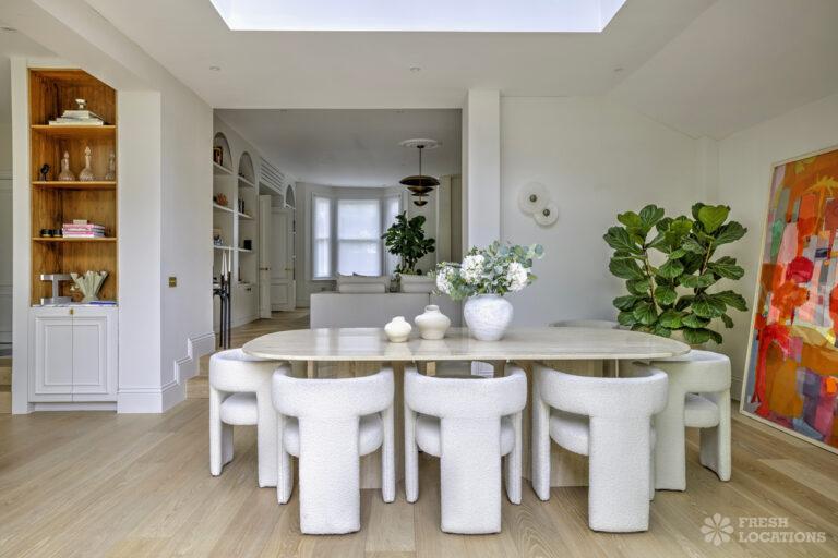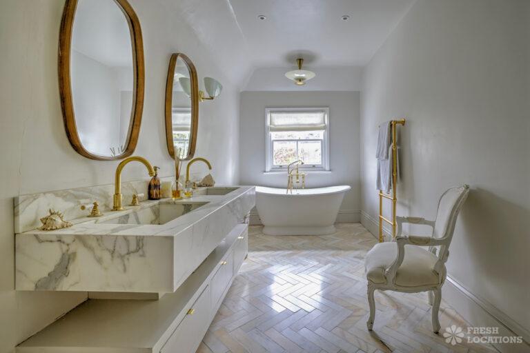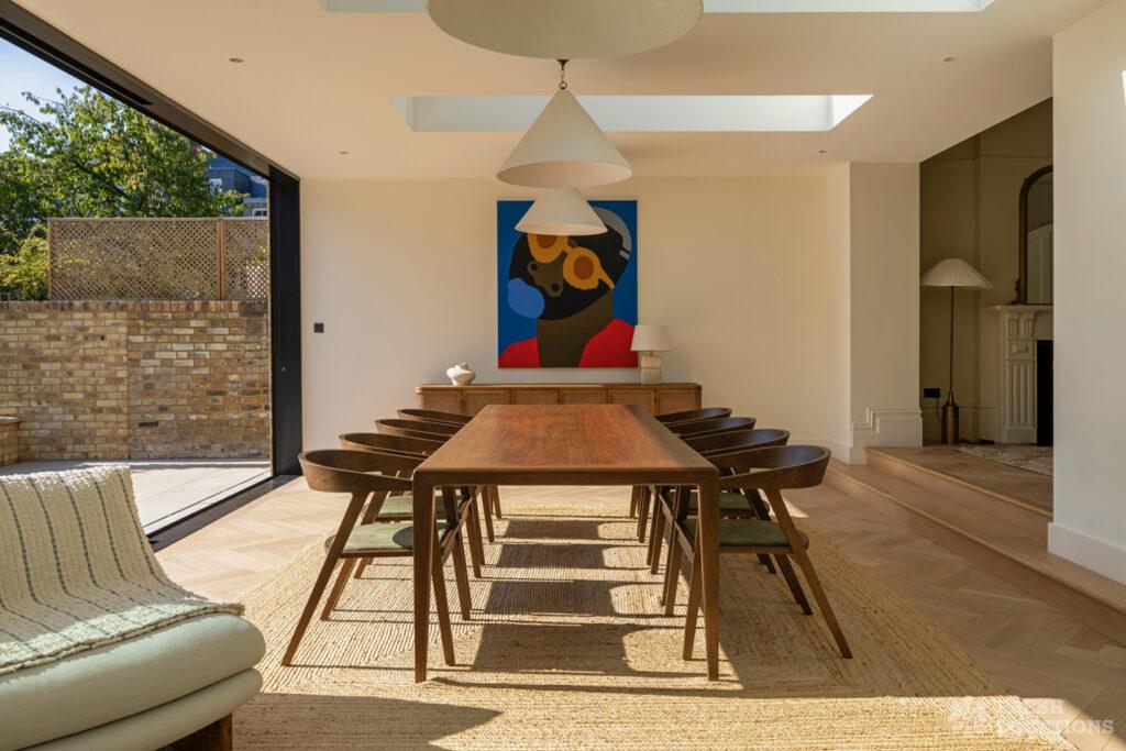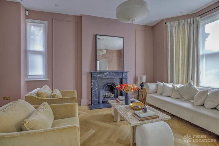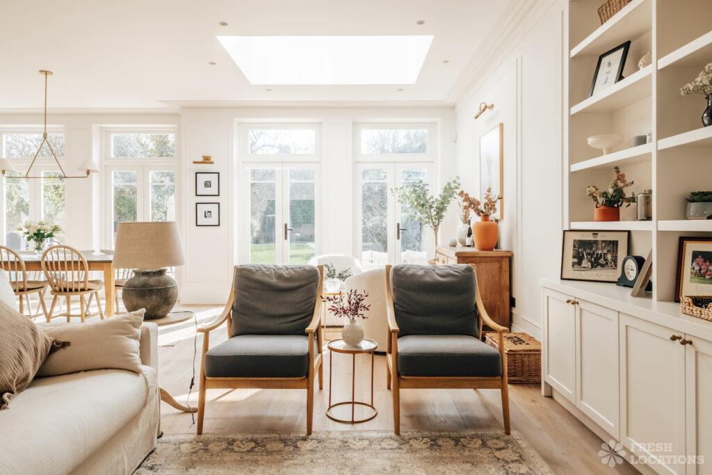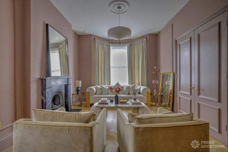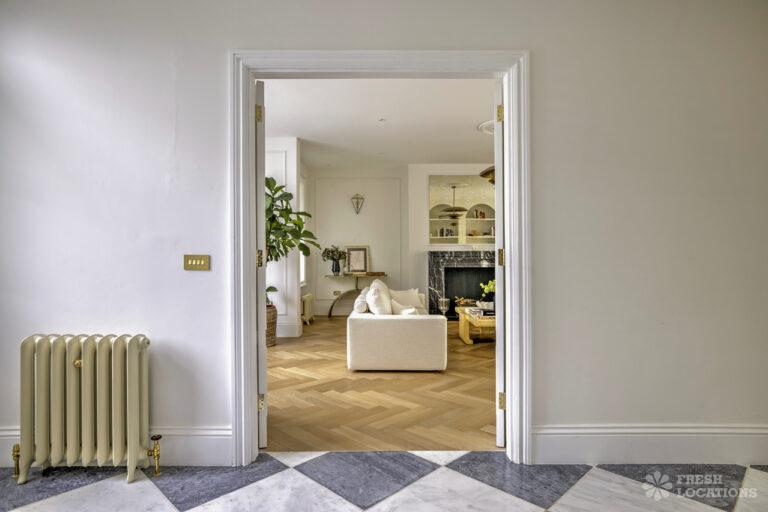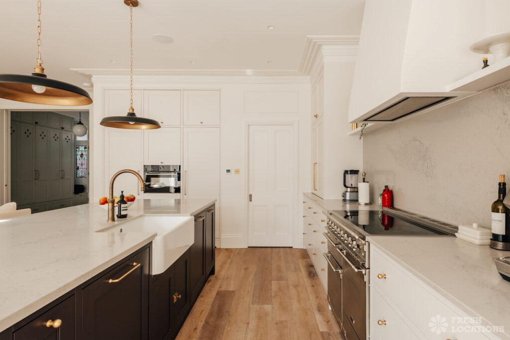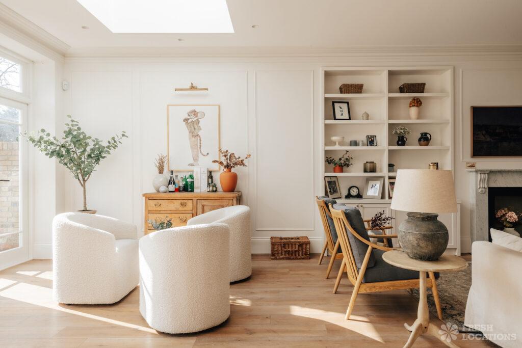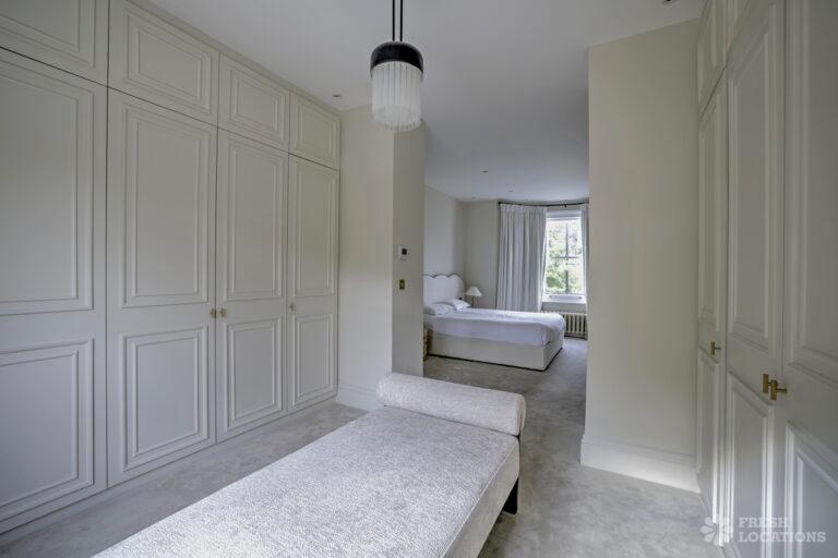 Crittall, Ensuite, Home bar, Island Kitchen, Large Kitchen, Light Wood Floor, Multiple Bathrooms, Parquet Floor, Staircase, Swimming Pool, Tiled Floor, Walk In Shower, Walk In Wardrobe, Wood FloorsA double-fronted detached house located in the London borough of Hounslow, featuring five bedrooms and bathrooms, a beautiful island kitchen with marble countertops, and elegant light filled interiors throughout. The property also boasts a large garden with a swimming pool, offering a luxurious and versatile setting for shoots.