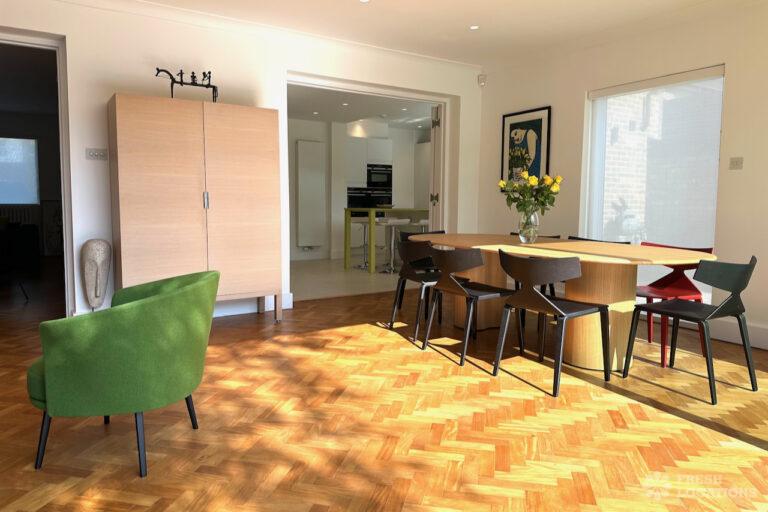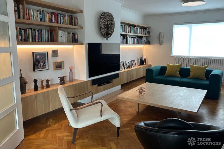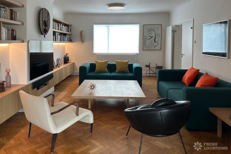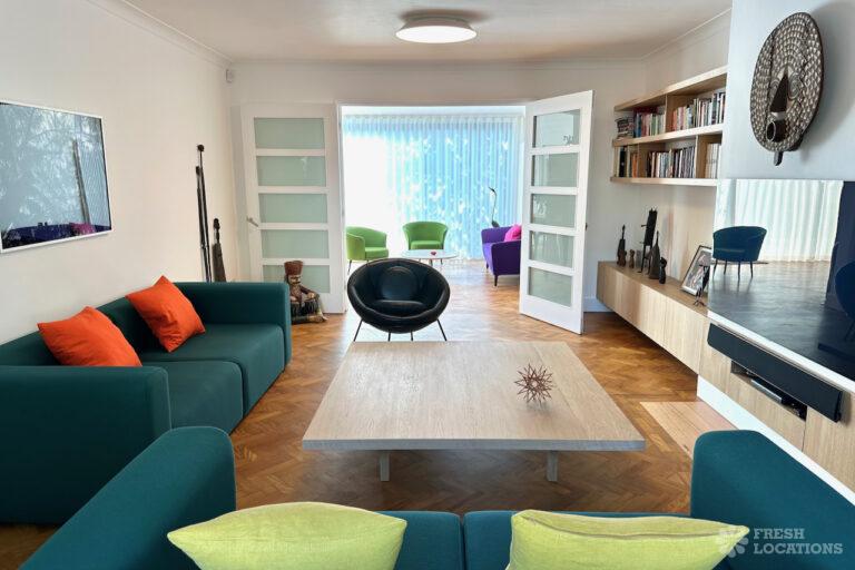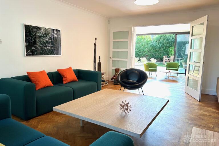 Colourful Kitchen, Driveway, Ensuite, Full Height Windows, Garden, Home Office, Island Kitchen, Multiple Bathrooms, Multiple Bedrooms, Parquet Floor, Walk In Shower, Wood FloorsA spacious 1960s detached house shoot location in London, stylishly refurbished while retaining mid-century character. Set across two floors, the property features five bedrooms and three bathrooms, with a quiet cul-de-sac setting overlooking a cemetery, offering a unique and versatile backdrop for shoots. Located in the London Borough of Barnet.