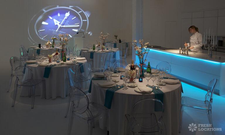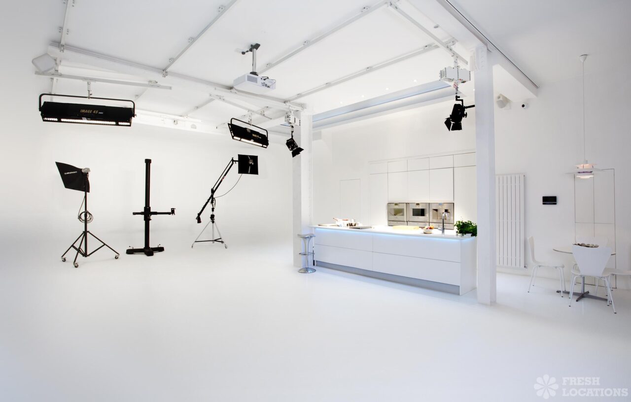 Photographic and film studio spread over 2 levels (street and lower ground). Green room, infinity cove, modern furniture and fixtures as well as two state of the art kitchens. Catering available. London Borough of Camden.