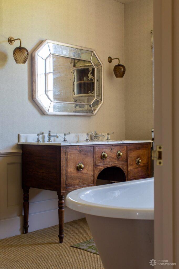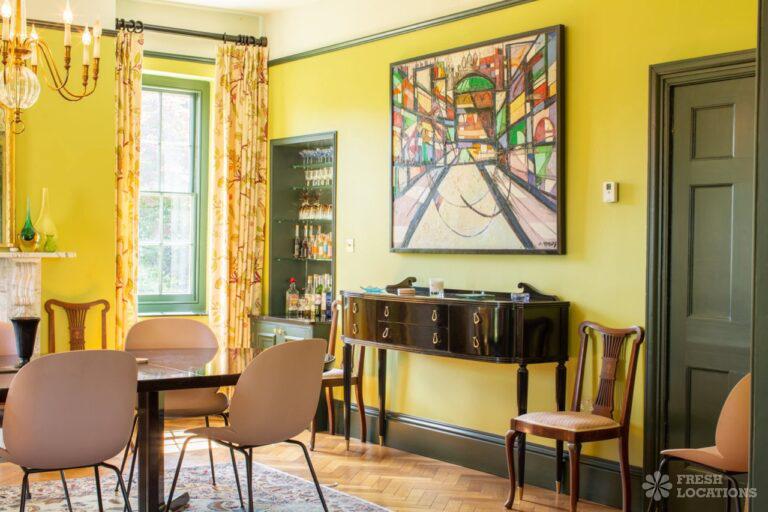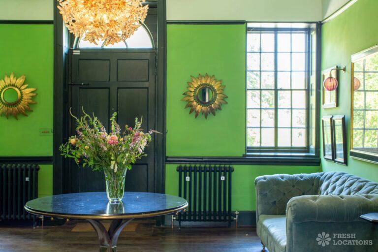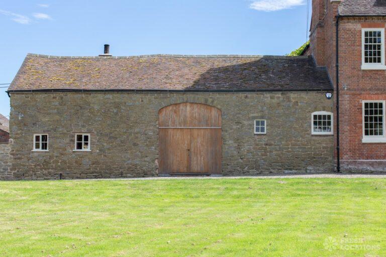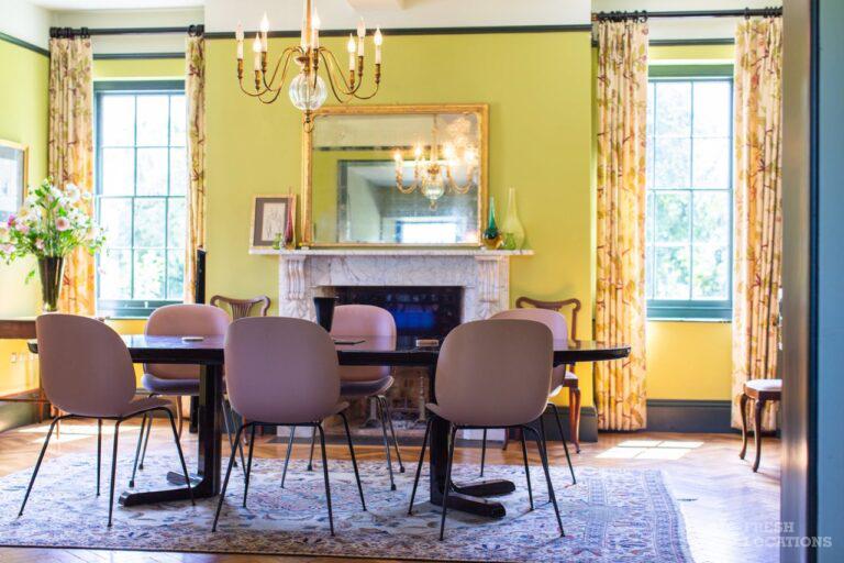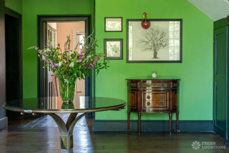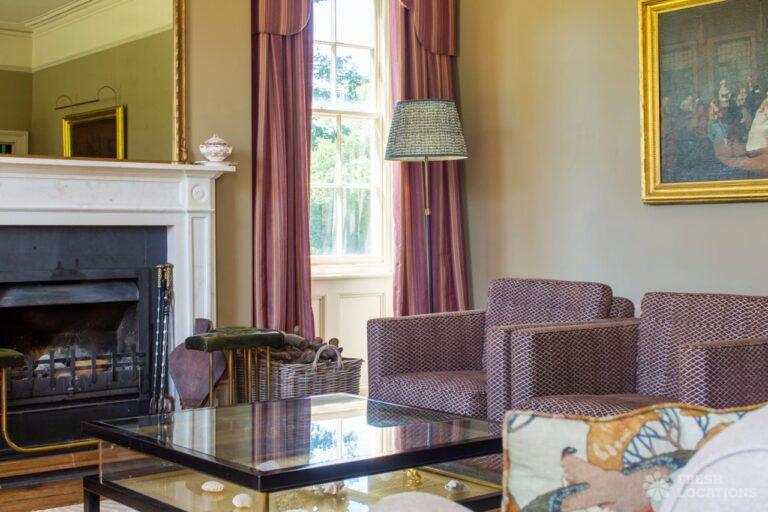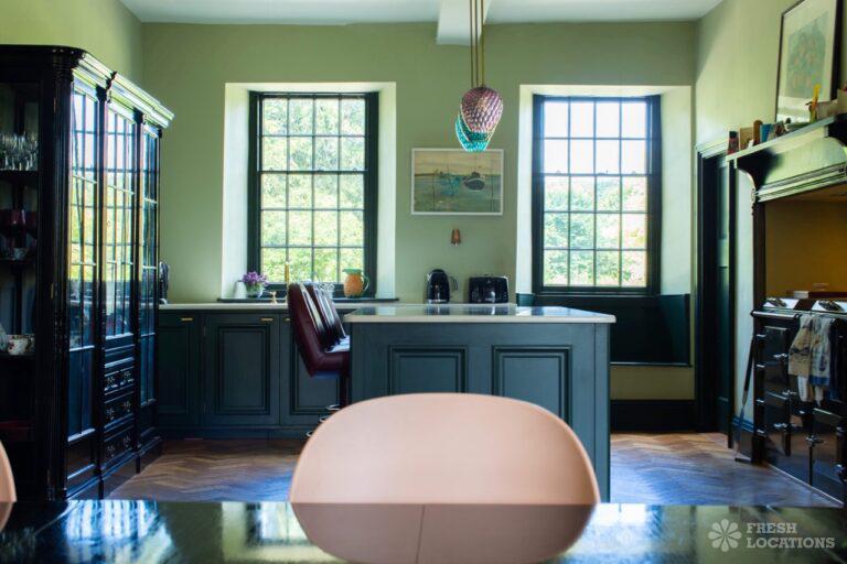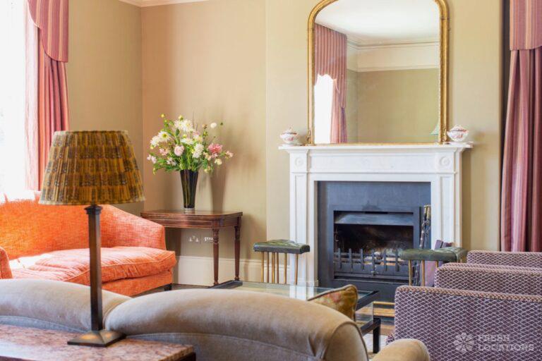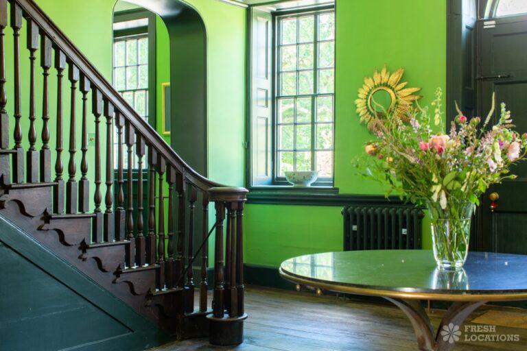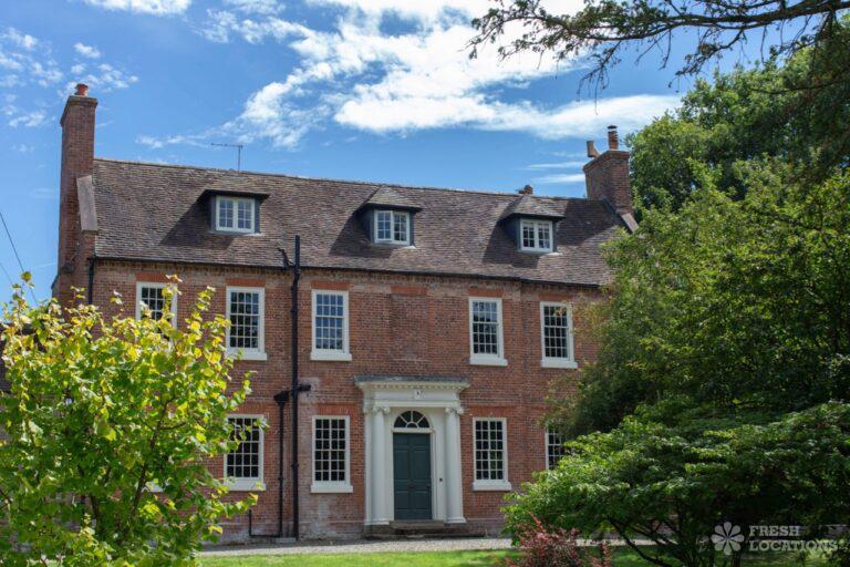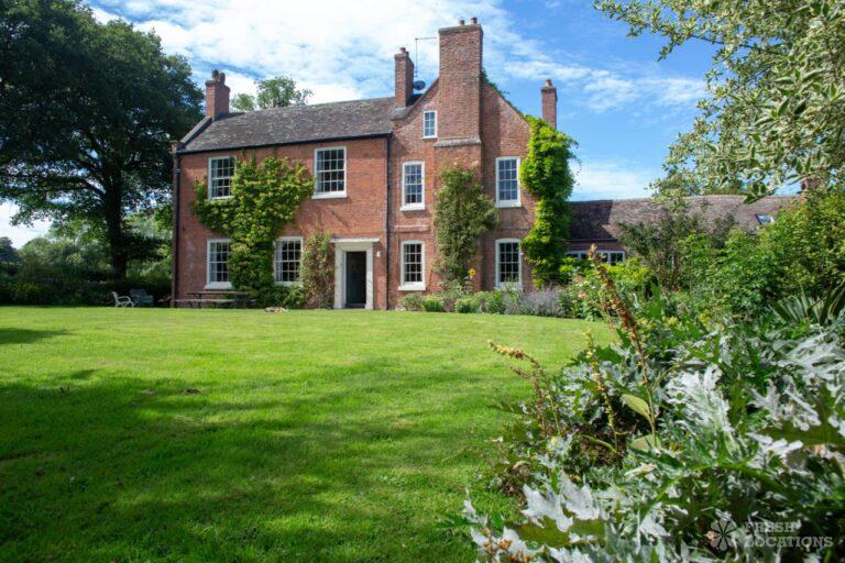 Aga, Dark Wood Floor, Fireplace, Garden, Island Kitchen, Open Plan, Parquet Floor, Staircase, Wood FloorsA large manor house filming and photoshoot location in Shropshire. It’s set in a herbaceous garden with several acres of pasture, tennis court and riding stables. Original features throughout brought up to date with colourful decor and furnishings.