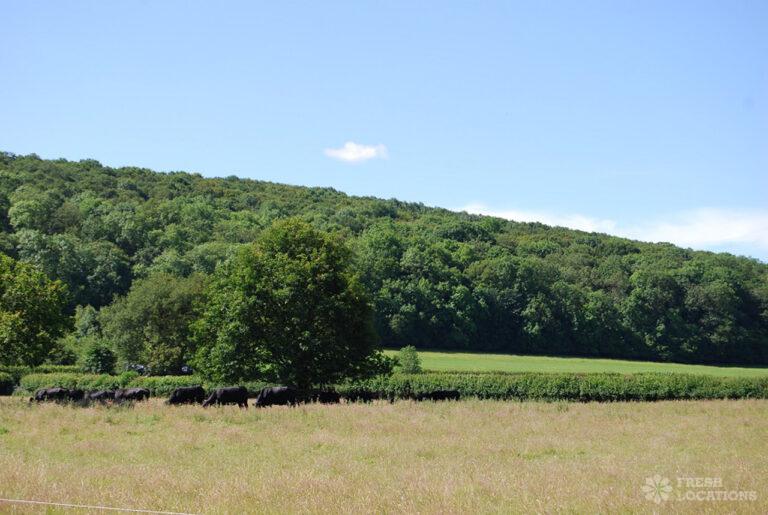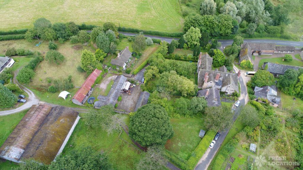 This 17th century manor house has ancient timber-framed barns, a modern farm, ancient woodland, meadows and river frontage. There is also a large 1950s Dutch barn on the site.