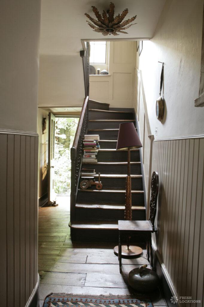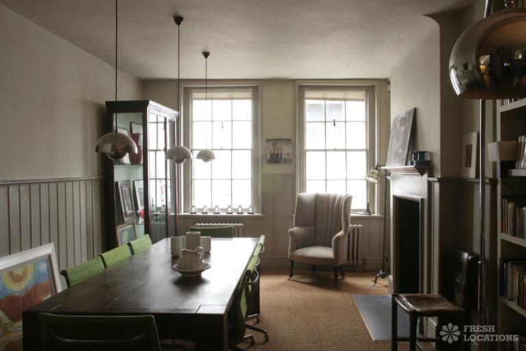 1722 Huguenot silk weaver’s house in central London. 10 rooms, wood panelled throughout with high ceilings, working fireplaces and broad wooden floorboards. London Borough of Tower Hamlets.