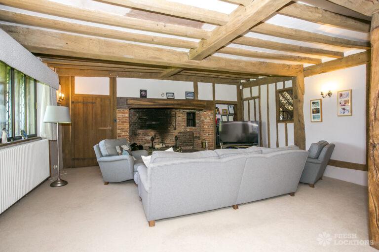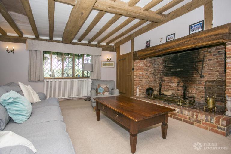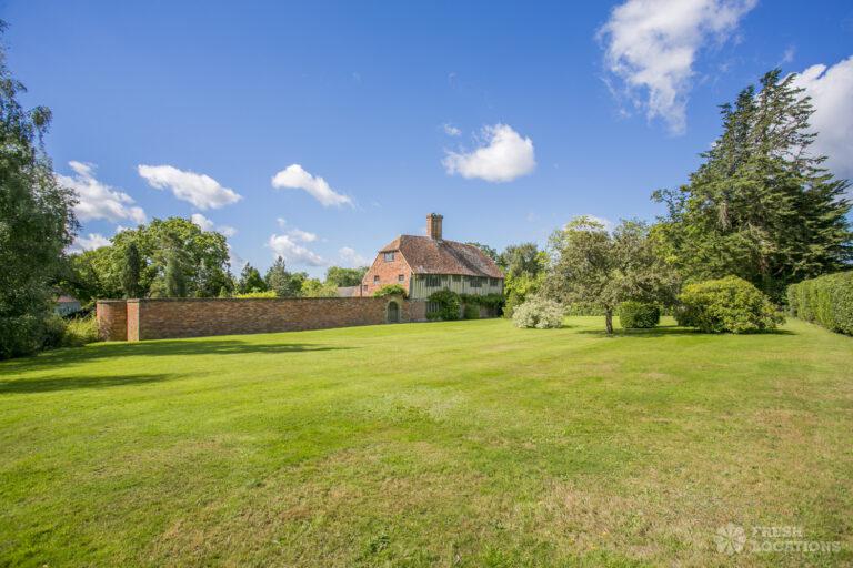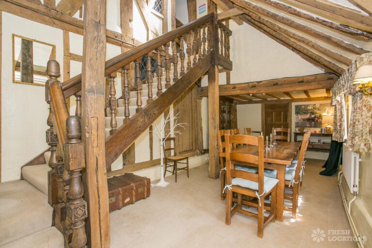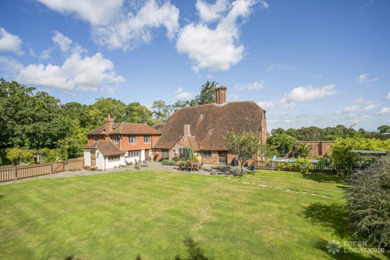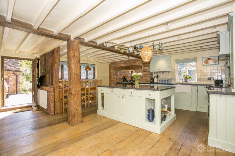Wood Floors, Aga, Colourful Kitchen, Dark Wood Floor, Driveway, Exposed Beams, Fireplace, Garden, Island Kitchen, Large Kitchen, Light Wood Floor, Open Plan, Staircase, Swimming Pool, Tiled FloorA historical country cottage with an open plan kitchen/dining room, living room, two bedrooms, and an expansive garden featuring an outdoor swimming pool.