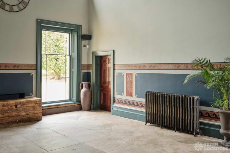Wood Floors, Balcony, Driveway, Fireplace, Garden, Island Kitchen, Large Bedroom, Large Driveway, Light Wood Floor, Parquet Floor, Staircase, Tiled Floor, Walk In Shower19th Century Grade II Manor House available as a photography and filming location. There are 3 formal reception rooms, 5 bedrooms, a cinema room, kitchen, large galleried hallway, porch and downstairs toilet all with ornate plasterwork and ceilings. Original wood floorboards throughout. Outside there are 1.5 acres of terraced formal gardens, a children’s woodland play area, and a large gravel driveway.