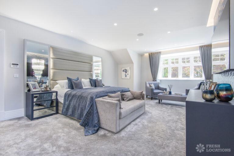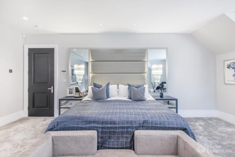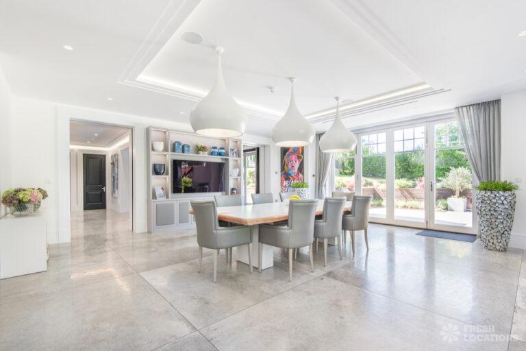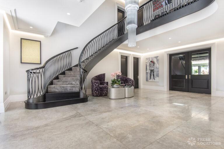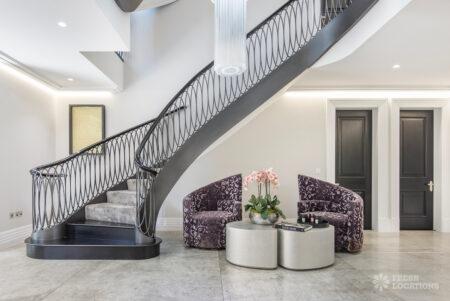 Driveway, Front Garden, Garage, Garden, Home bar, Large Kitchen, Multiple Bedrooms, Multiple Living Rooms, Open Staircase, Staircase, Walk In WardrobeA show-stopping modern mansion shoot location in Hertfordshire featuring six bedrooms and eight bathrooms. This supersized property includes with a home bar, cinema room, and gym, offering an exceptional and versatile backdrop.