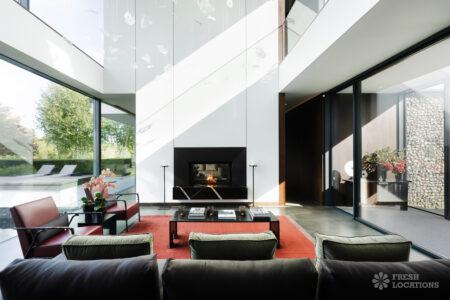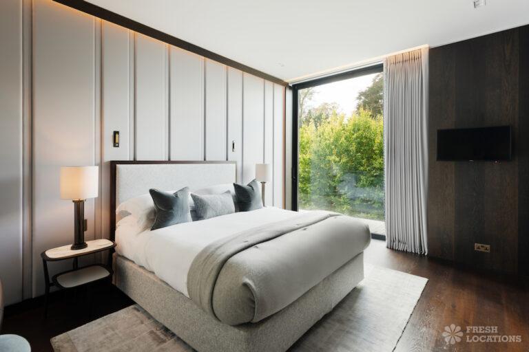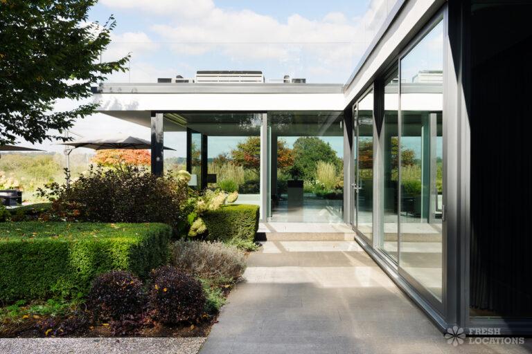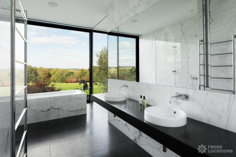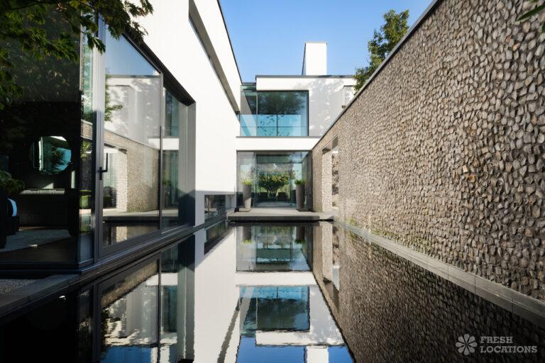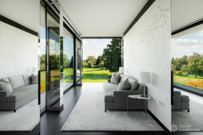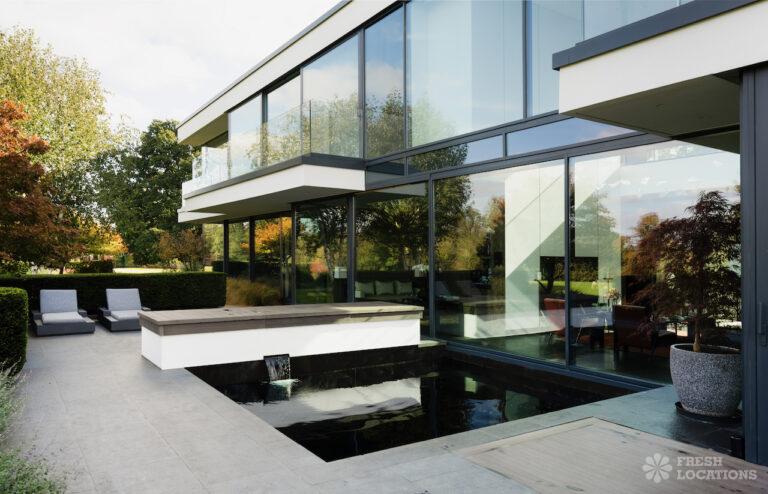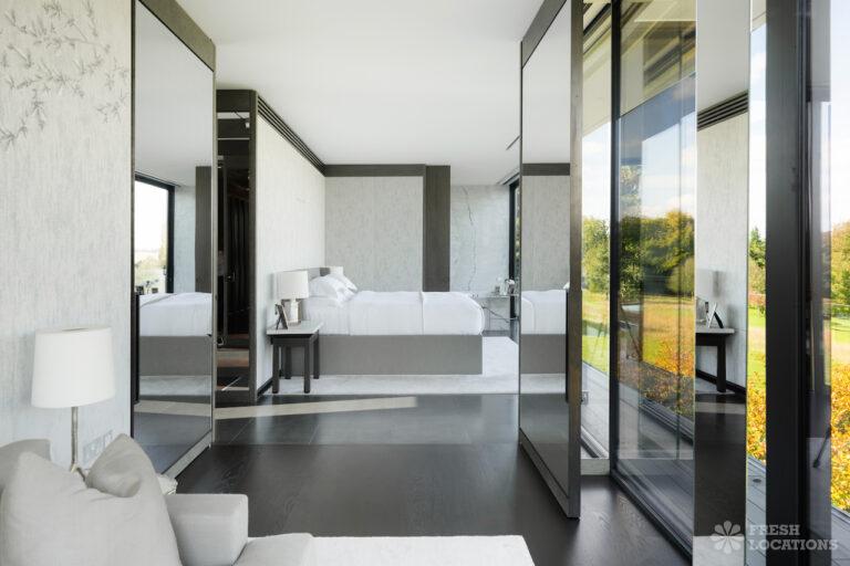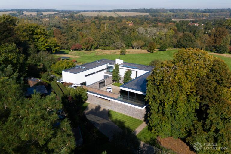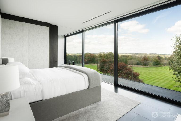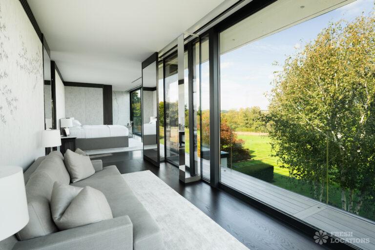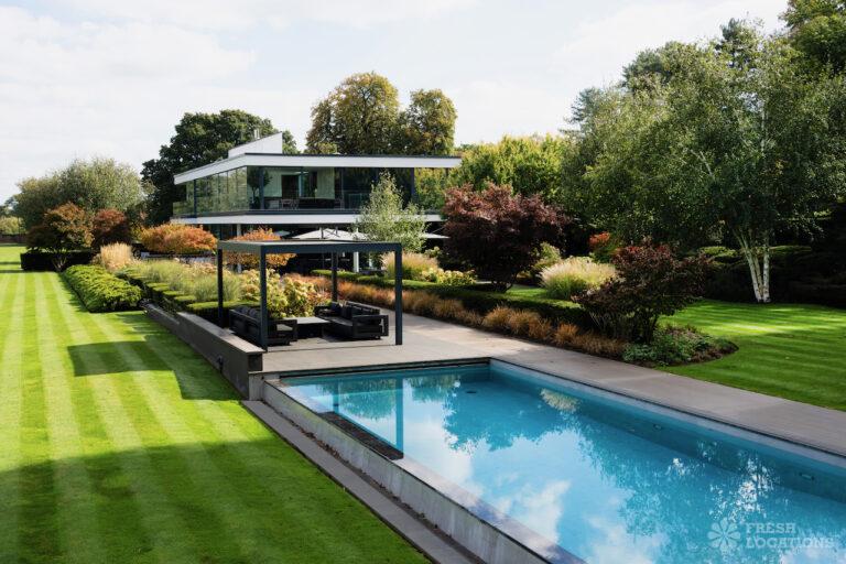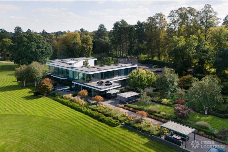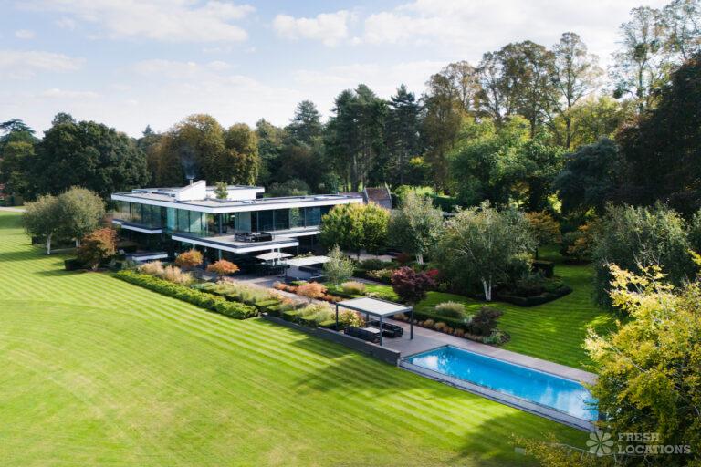Dark Wood Floor, Decked Terrace, Driveway, Ensuite, Fireplace, Full Height Windows, Garage, Garden, Home bar, Home Gym, Home Office, Island Cooker, Island Kitchen, Large Bedroom, Large Driveway, Large Garden, Large Kitchen, Multiple Bathrooms, Multiple Bedrooms, Multiple Living Rooms, Open Plan, Staircase, Swimming Pool, Walk In Shower, Walk In Wardrobe, Wood FloorsA show-stopping ultra-modern glass house shoot location in Berkshire featuring five bedrooms and nine bathrooms. The property boasts a striking double-height central hall, landscaped gardens, and a garage complete with a bar. Offering sleek contemporary architecture and luxury detailing throughout, this exceptional home provides a dramatic backdrop for shoots.