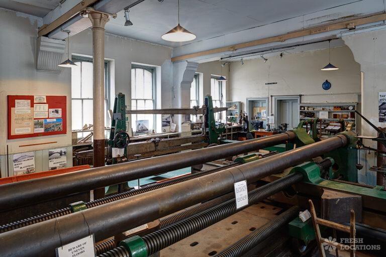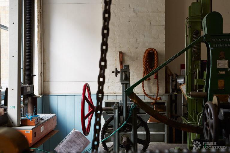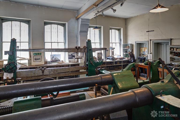 Southwark Museum is a fantastic historical location, ideal for photography and film shoots. The Machine Room has wooden floorboards, natural light and stunning original features. The 19th century writing materials, book cabinets and mechanical specimens make the office a real piece of history. It is an ideal location for period shoots. The basement offers exposed brickwork and a range of textured backdrops. London Borough of Southwark.
