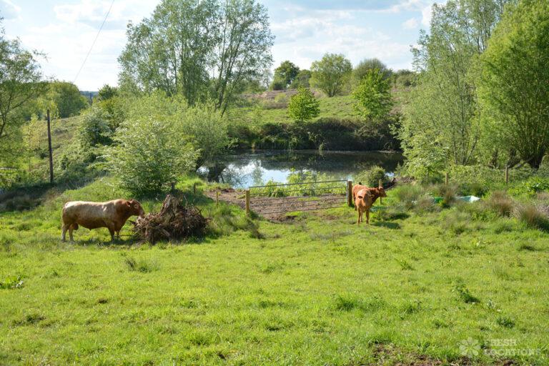 A 120 acre working cattle farm set on slopes with stunning views across the Buckinghamshire valley. The farm consists of a range of agricultural buildings, barns plus a 9 bay stable block, all set in a spacious 2 acre farmyard providing additional space for production vehicles and parking. There are numerous fields – both on the flat and on a slope – all laid to grass. There are several wild areas from long, unkempt grasses and bracken to wooded areas. There are two large ponds surrounded by mature willow trees. Opposite the farm is a 200 acre forest, a canal complete and a canal lock.