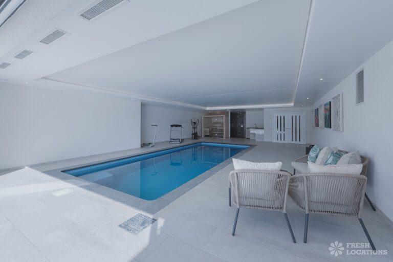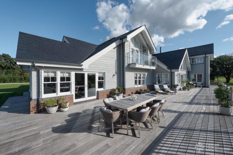 Balcony, Dark Wood Floor, Decked Terrace, Ensuite, Exposed Beams, Fireplace, Garden, Island Kitchen, Large Bathroom, Large Bedroom, Large Kitchen, Open Plan, Parquet Floor, Staircase, Swimming Pool, Tiled Floor, Unrestricted Parking, Walk In Shower, Wood FloorsA stunning and unique New England style, detached house set within 5 acres of gardens with paddocks, stables and woodland. This open plan property features 6 bedrooms, multiple reception rooms and bathrooms and a large kitchen diner leading to a decked veranda. Indoor swimming pool and sauna with bi-fold doors to a patio revealing a stunning view of the Downs.