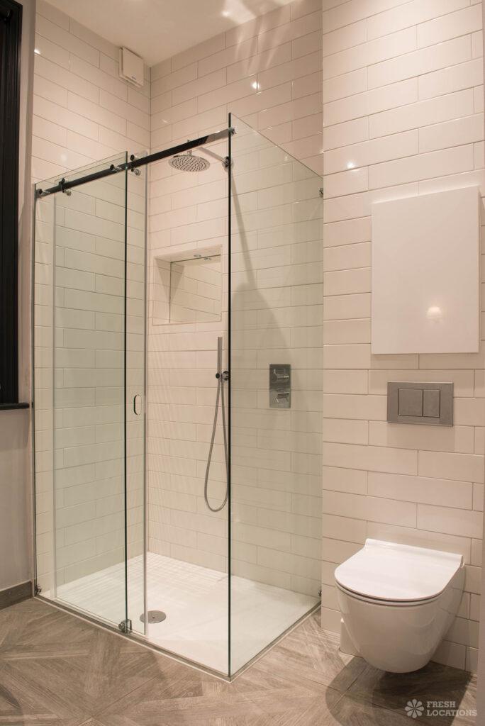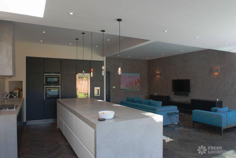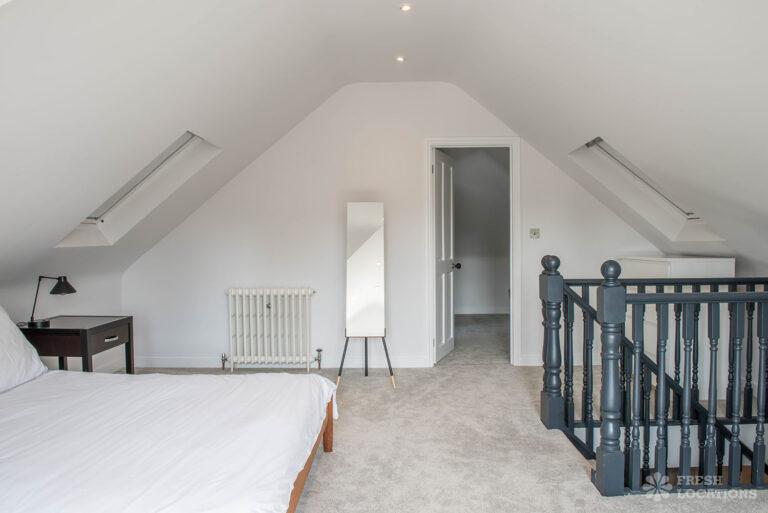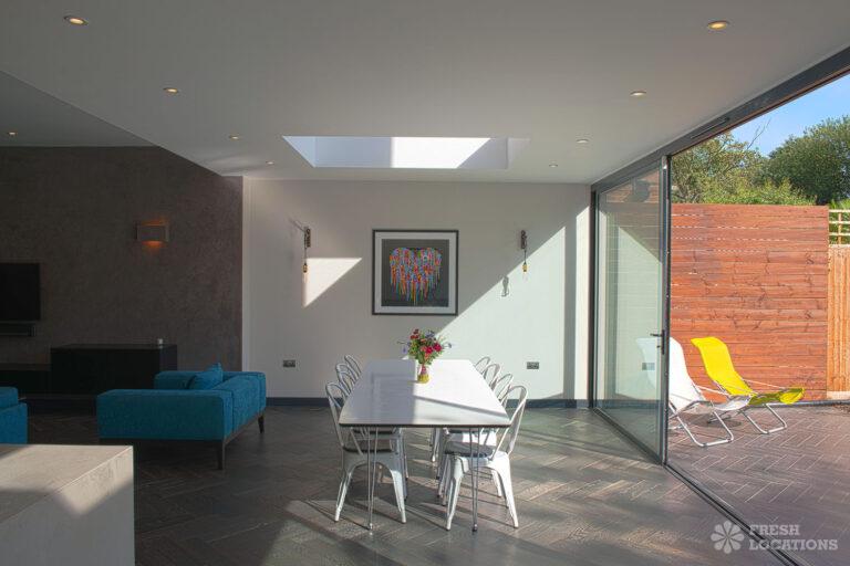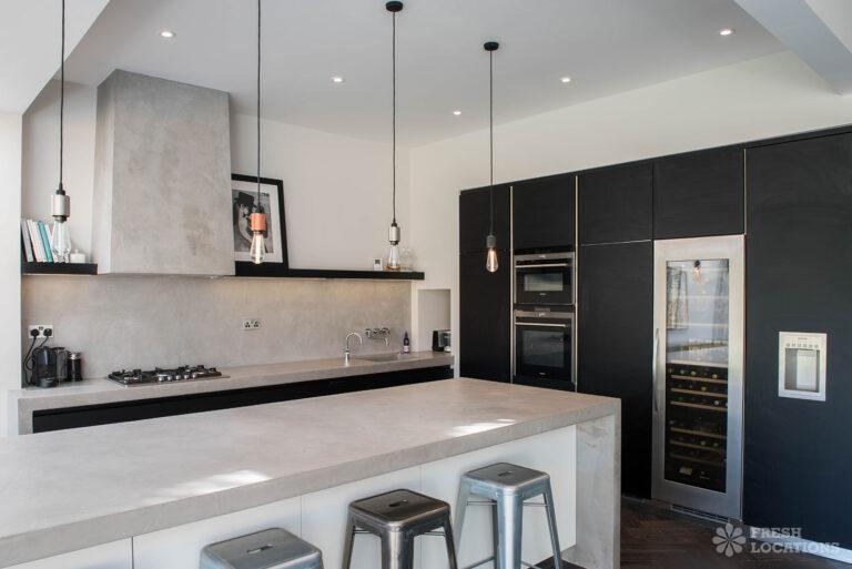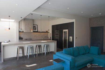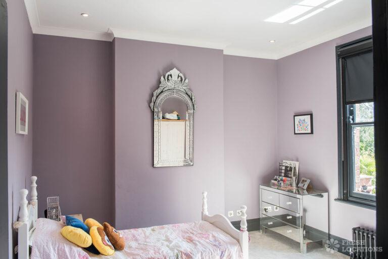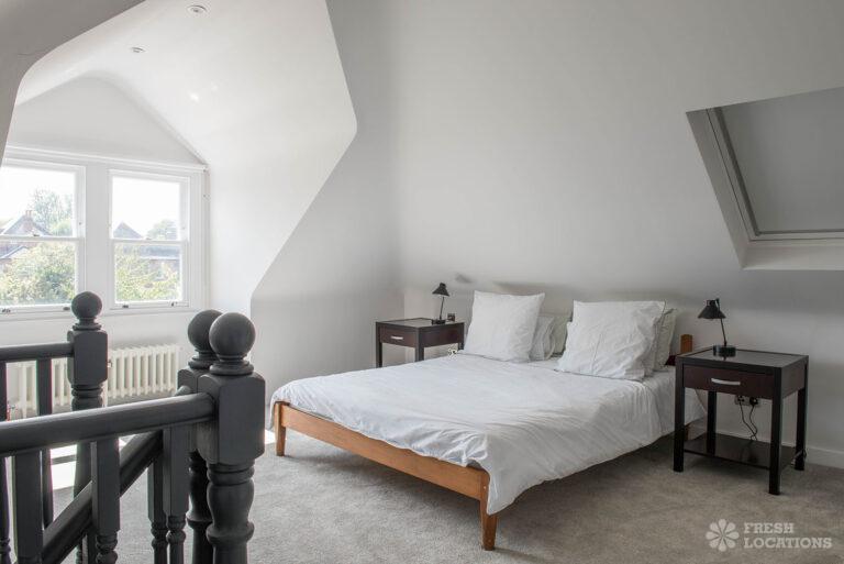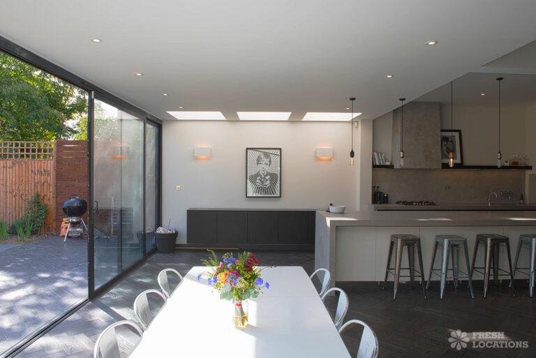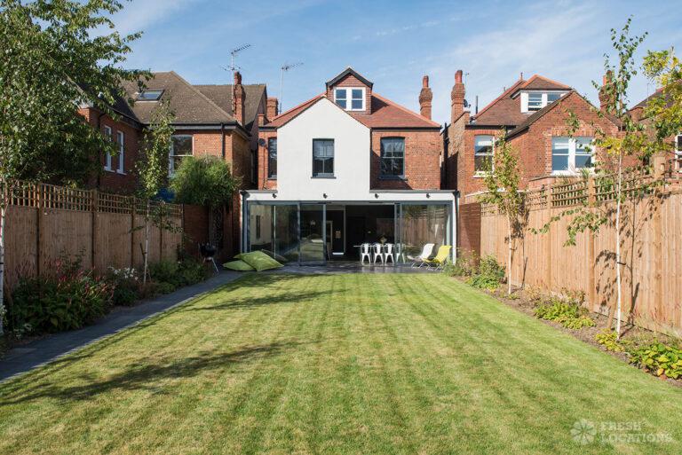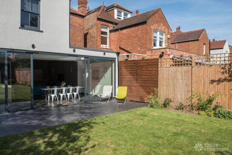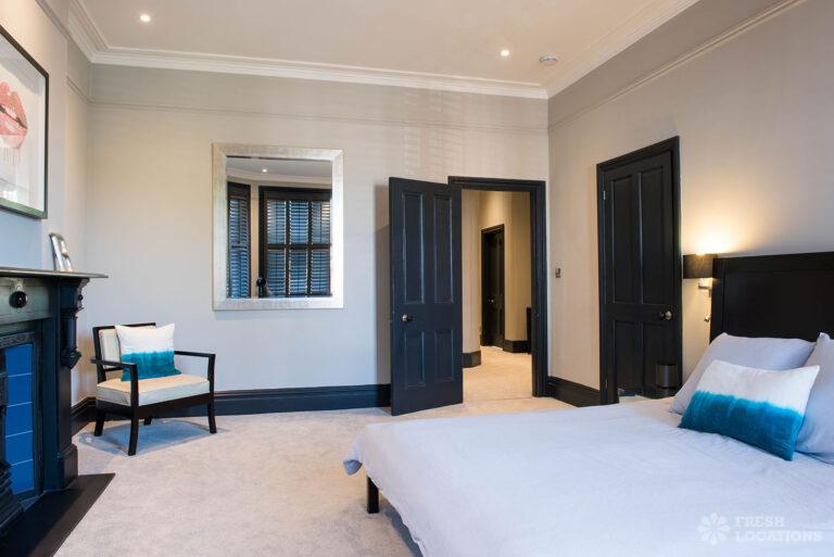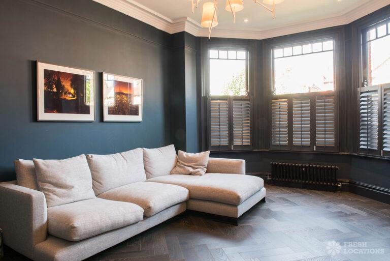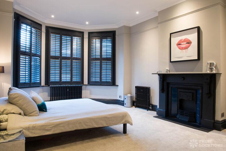 Wood Floors, Bay Window, Dark Wood Floor, Driveway, Fireplace, Garden, Island Kitchen, Large Bedroom, Large Kitchen, Open Plan, Parquet Floor, Staircase, Tiled Floor, Walk In ShowerDetached Victorian shoot location house in North West London. The modern extension features an open plan kitchen/dining/living area with sliding doors leading out to a fenced garden. Separate, blue painted living room and large ensuite bedroom. Luxuriously decorated with parquet floors. London Borough of Brent.
