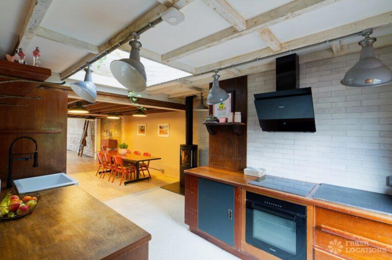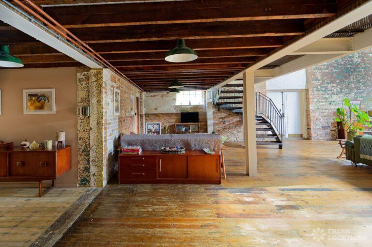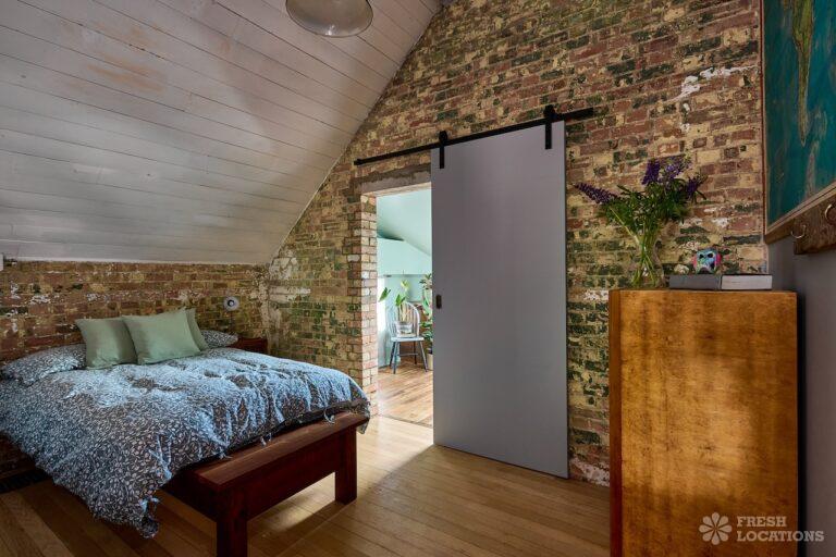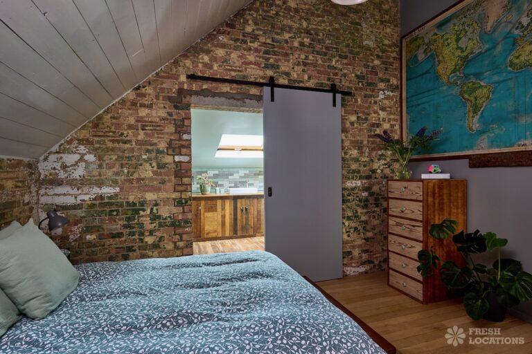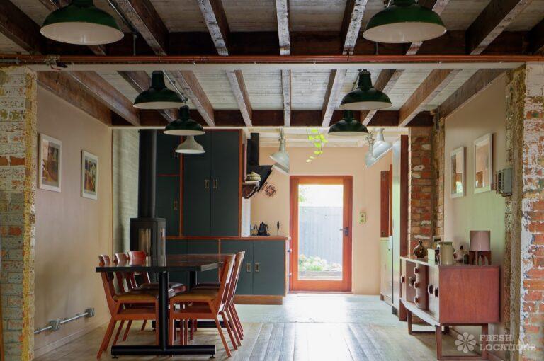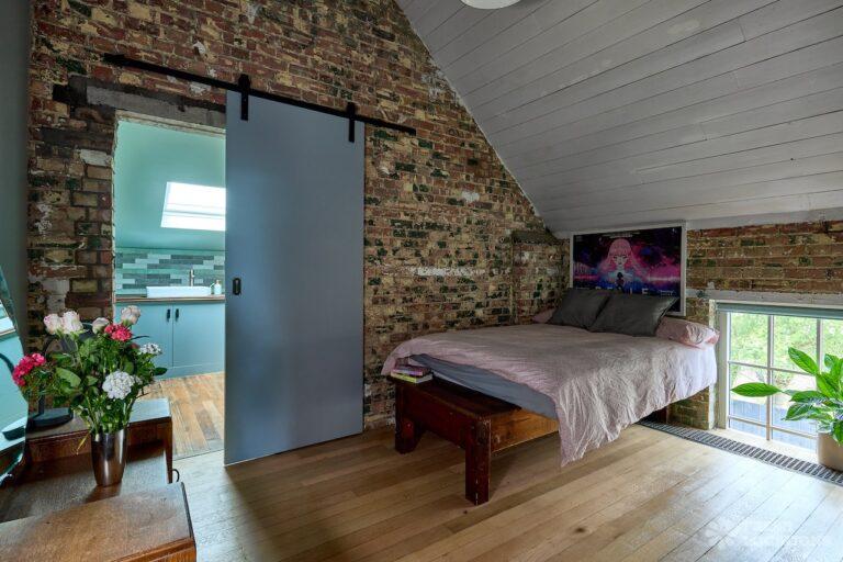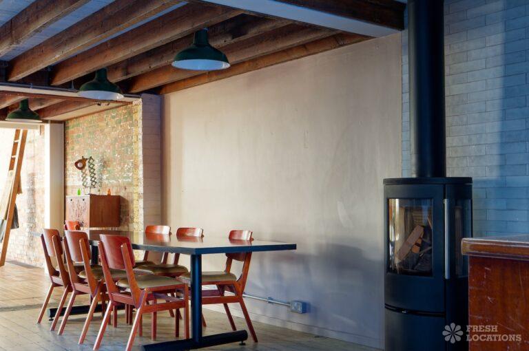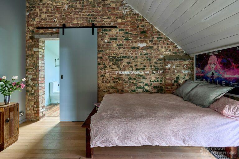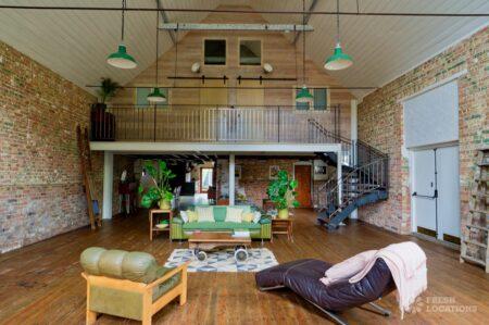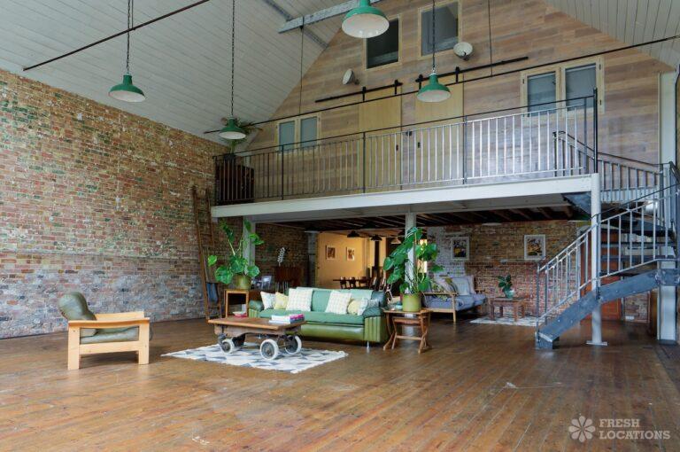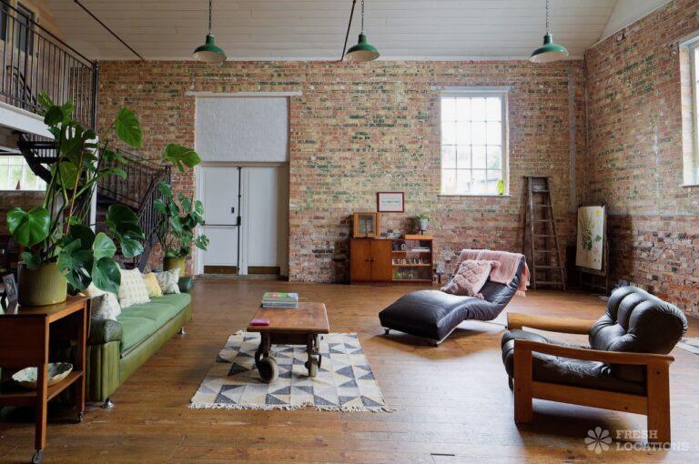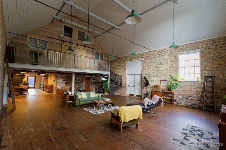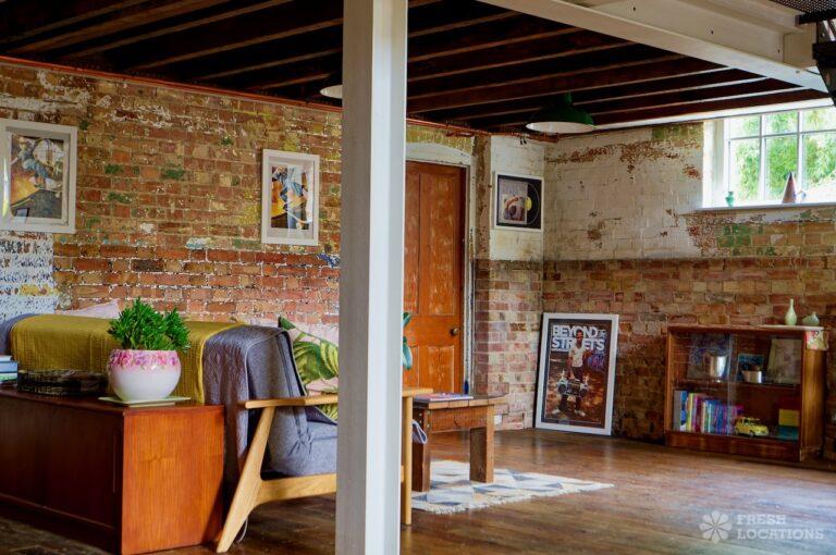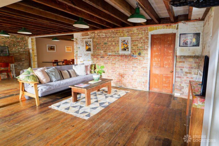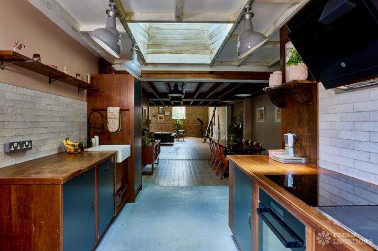 Wood Floors, Ensuite, Exposed Beams, Exposed Brick, Light Wood Floor, Multiple Bathrooms, Multiple Bedrooms, Open Plan, SkylightsA former village hall that has been converted into an industrial style house. There is a living room which spans 1000 square feet and has double height pitched timber ceilings. It features exposed brick walls, sliding doors and a metal staircase.