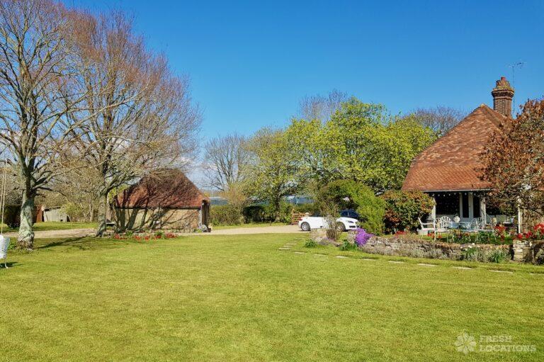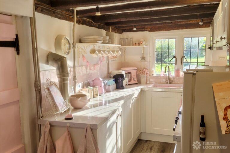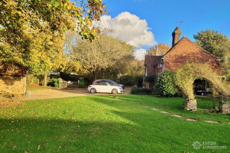 A country cottage shoot location in Surrey. This 16th century property has a cosy interior with exposed beams and an inglenook fireplace. Outside there are extensive gardens and views over surrounding rolling fields with ample parking.