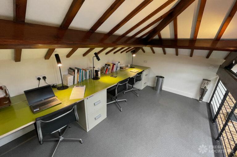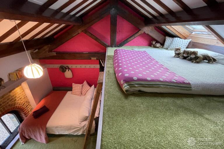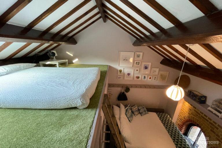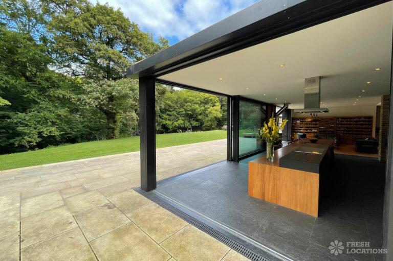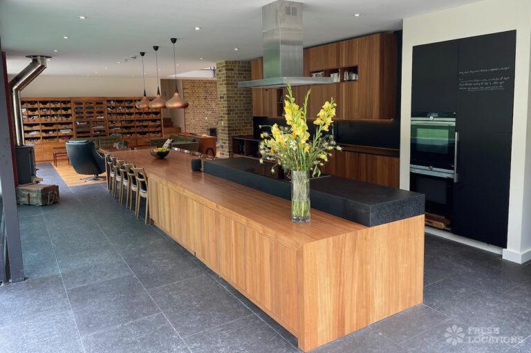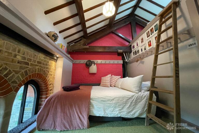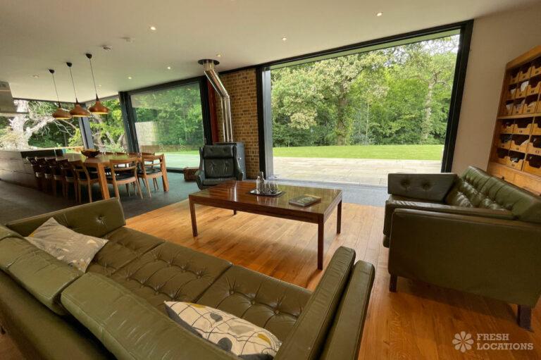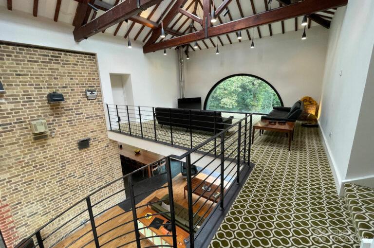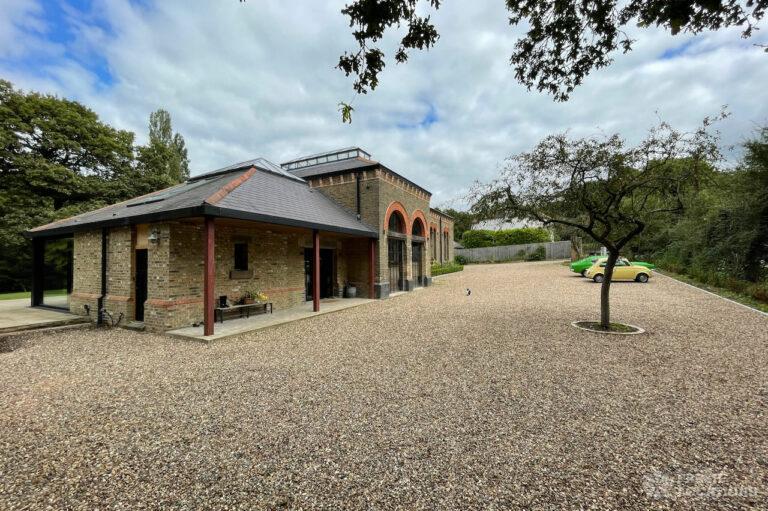 Wood Floors, Crittall, Driveway, Exposed Beams, Exposed Brick, Fireplace, Full Height Windows, Garage, Garden, Home Office, Inglenook Fireplace, Large Driveway, Large Garden, Multiple Bathrooms, Multiple Bedrooms, Multiple Living Rooms, Open Plan, Open Staircase, Spiral Staircase, Staircase, Tiled FloorThis shoot location is a converted Victorian water pumping station with a mid century interior style. There is a double height vaulted ceiling, with two mezzanine levels looking onto the open plan living area. The full height sliding doors provide ample light in to the kitchen, where there is a stylish elongated island/dining table. There are five bedrooms within this property, and four bathrooms. Set on two acres of garden and woodland, this property is located in Hertfordshire.